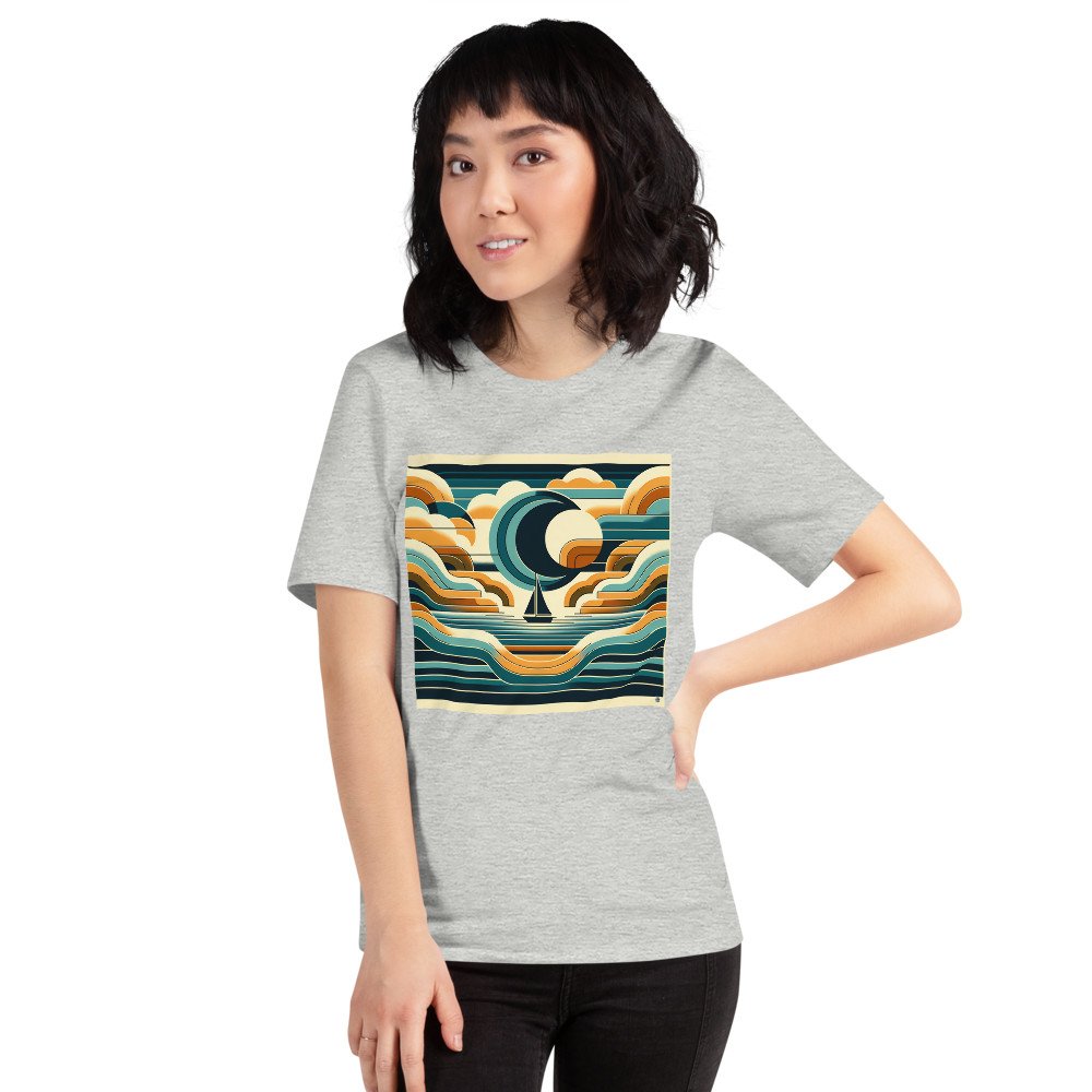 Geometric Sailboat at Crescent Moon Sea — T-Shirt