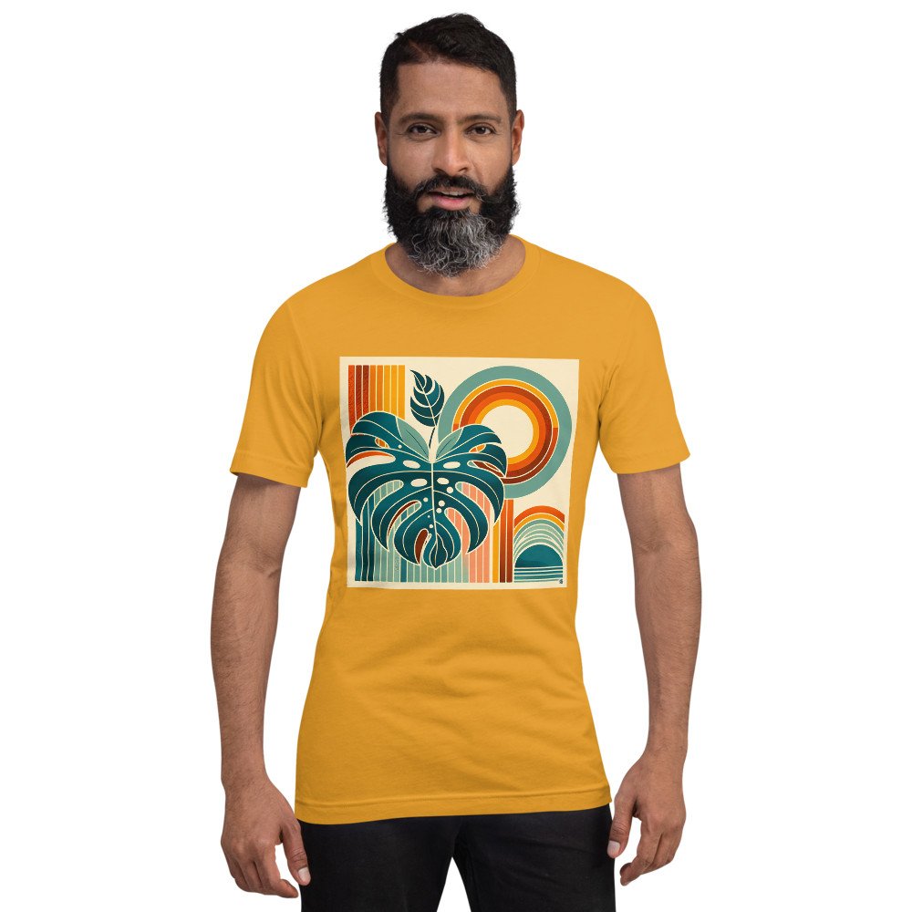 Geometric Monstera with Retro Sun Arches — T-Shirt