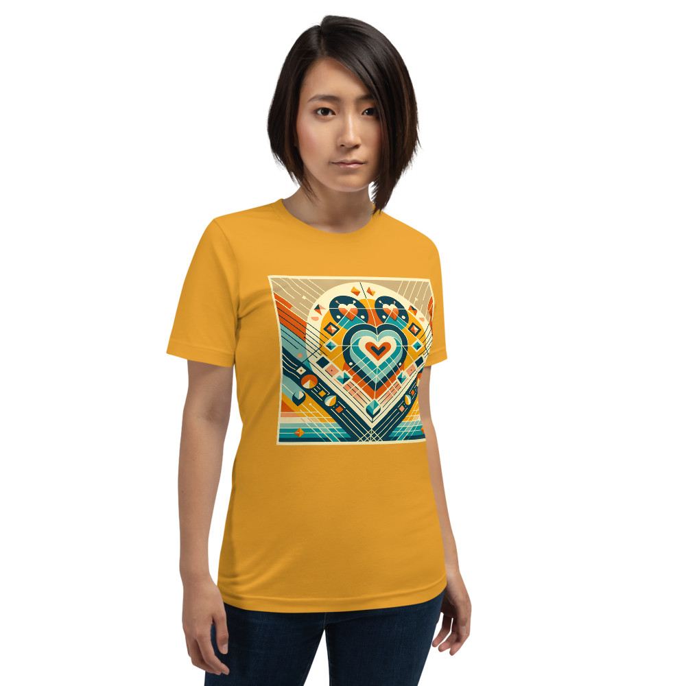 Amber MeridianSymmetrical Geometric Heart in Teal and Amber — T-Shirt