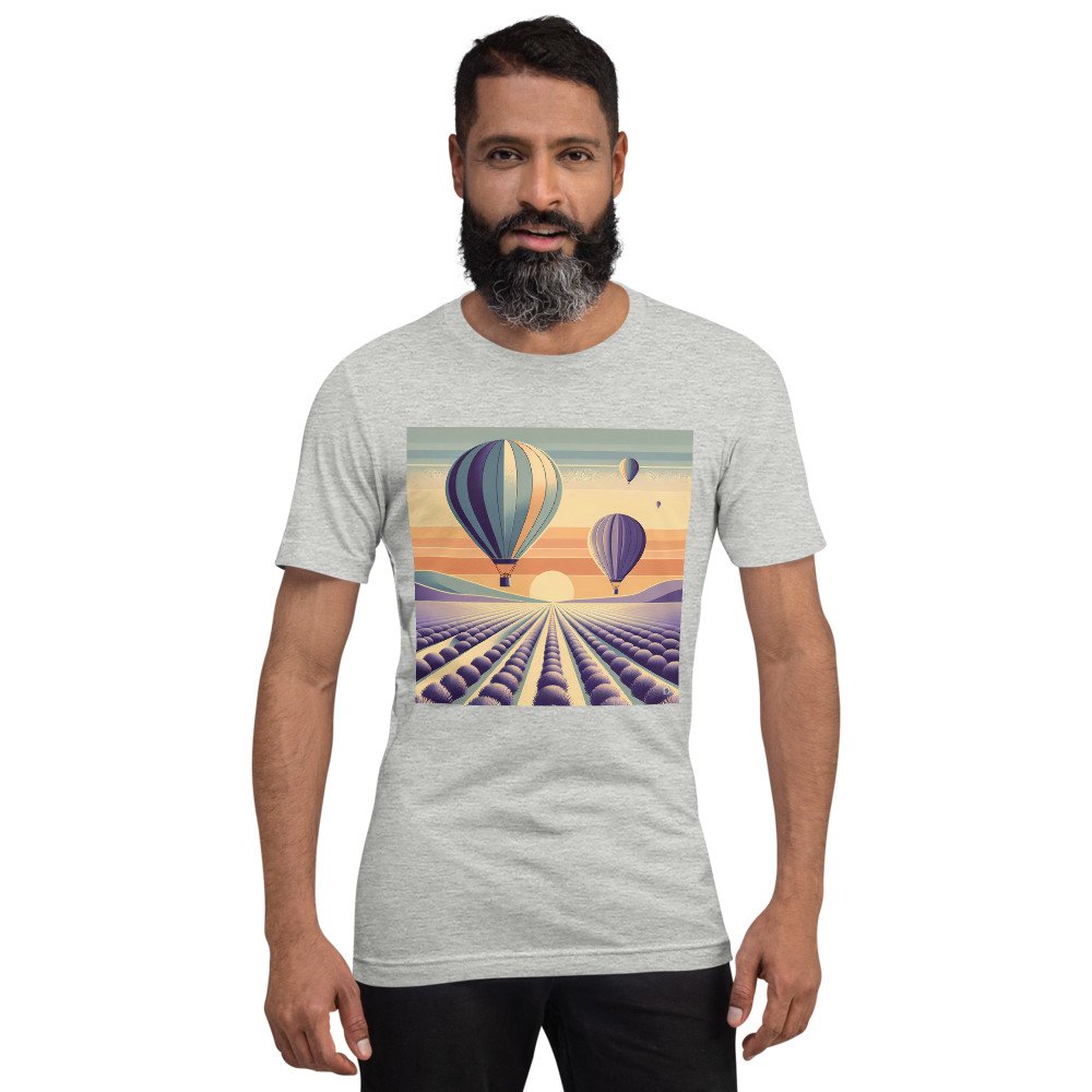Lavender HorizonRetro Hot Air Balloons Over Lavender Fields at Sunset — T-Shirt
