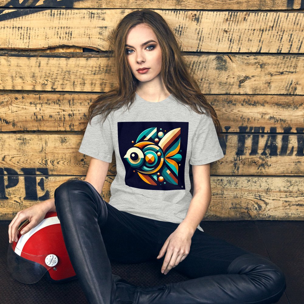 Retro Geometric Fish Illustration in Teal and Orange — T-Shirt