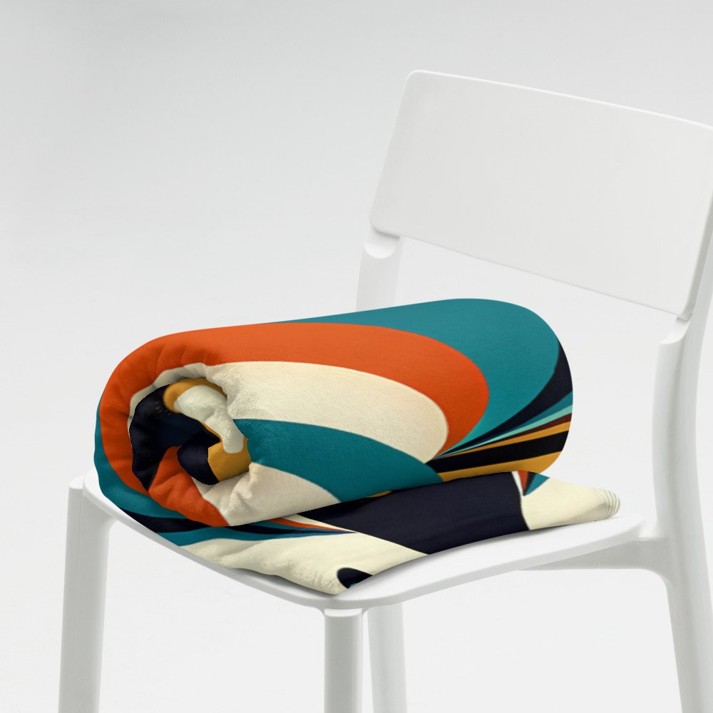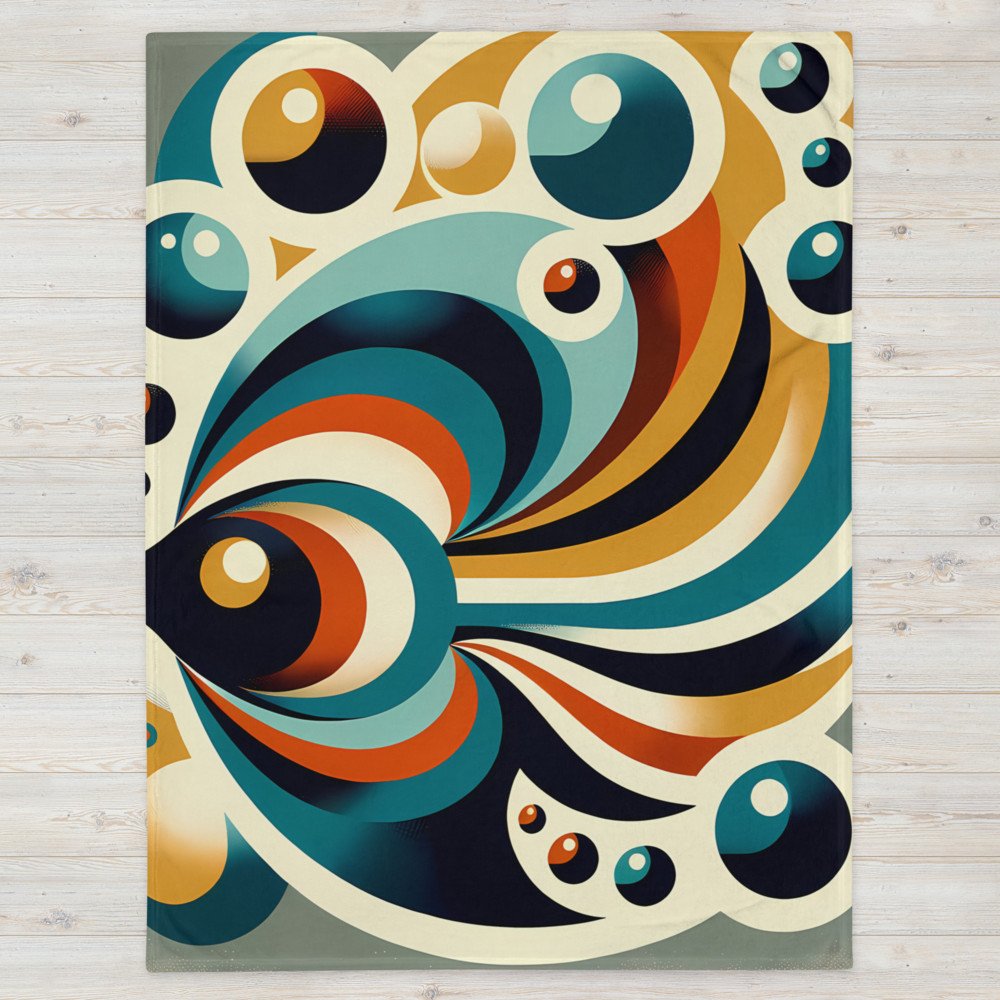 Riptide DriftRetro Geometric Fish with Bubbles in Teal and Ochre — Throw Blanket