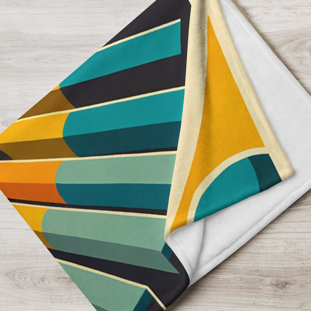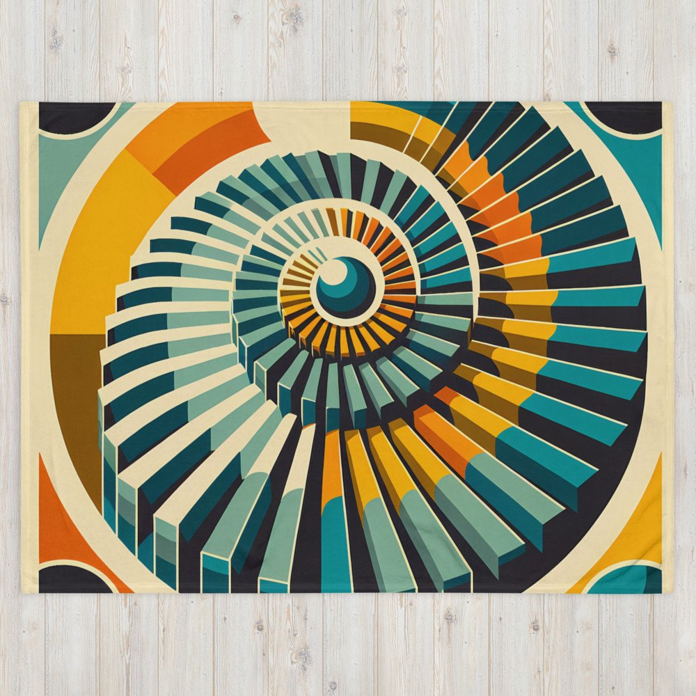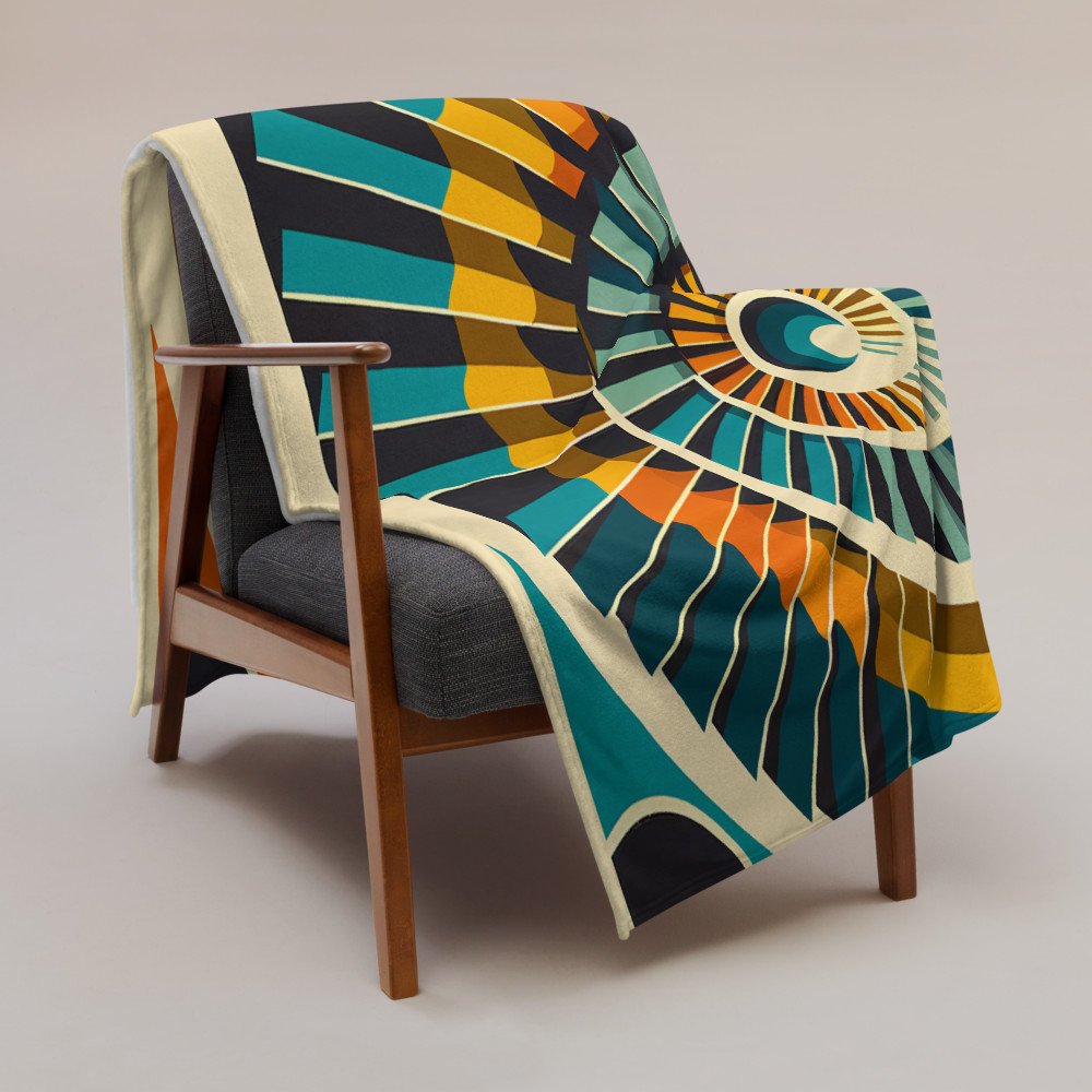 Orbiting PrismRetro Geometric Spiral Sunburst in Teal and Orange — Throw Blanket