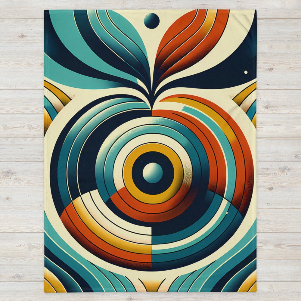 Retro Geometric Abstract in Teal and Orange — Throw Blanket