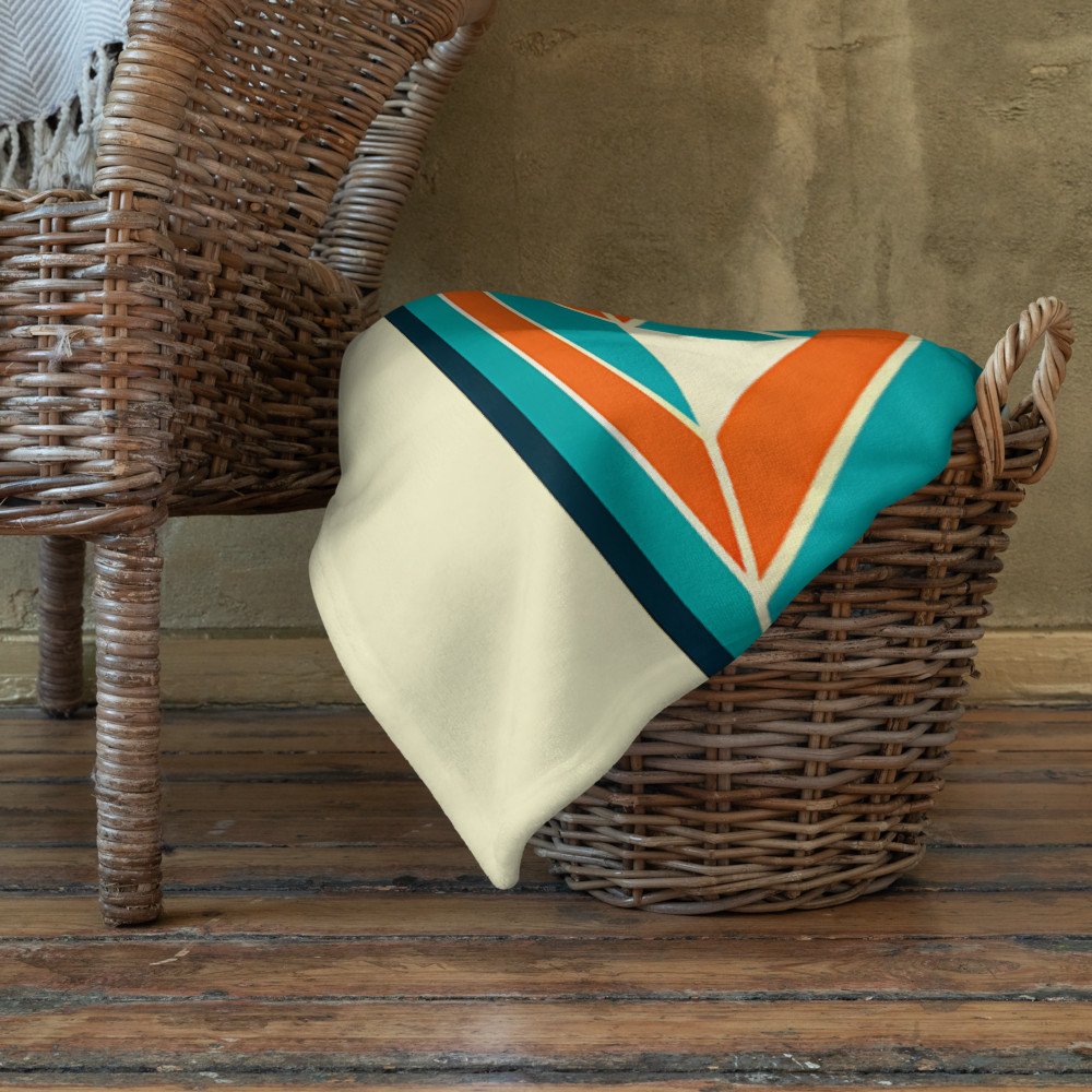 Geometric Arrow Burst in Teal and Orange — Throw Blanket