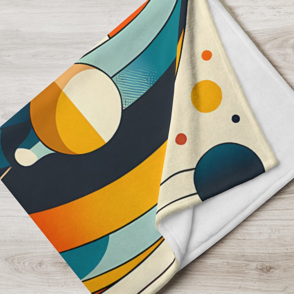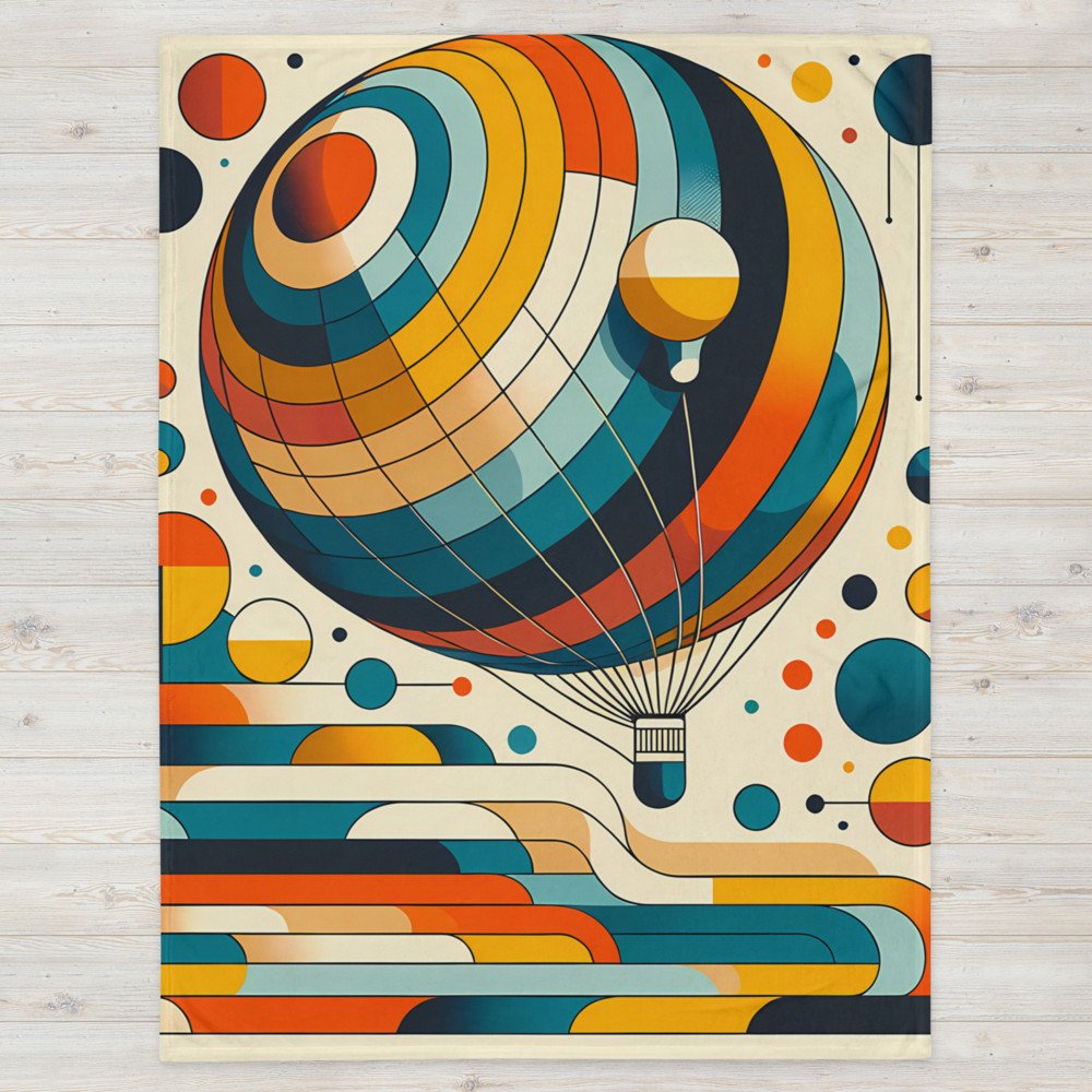 Crescent VoyageGeometric Hot Air Balloon in Retro Colour Blocks — Throw Blanket