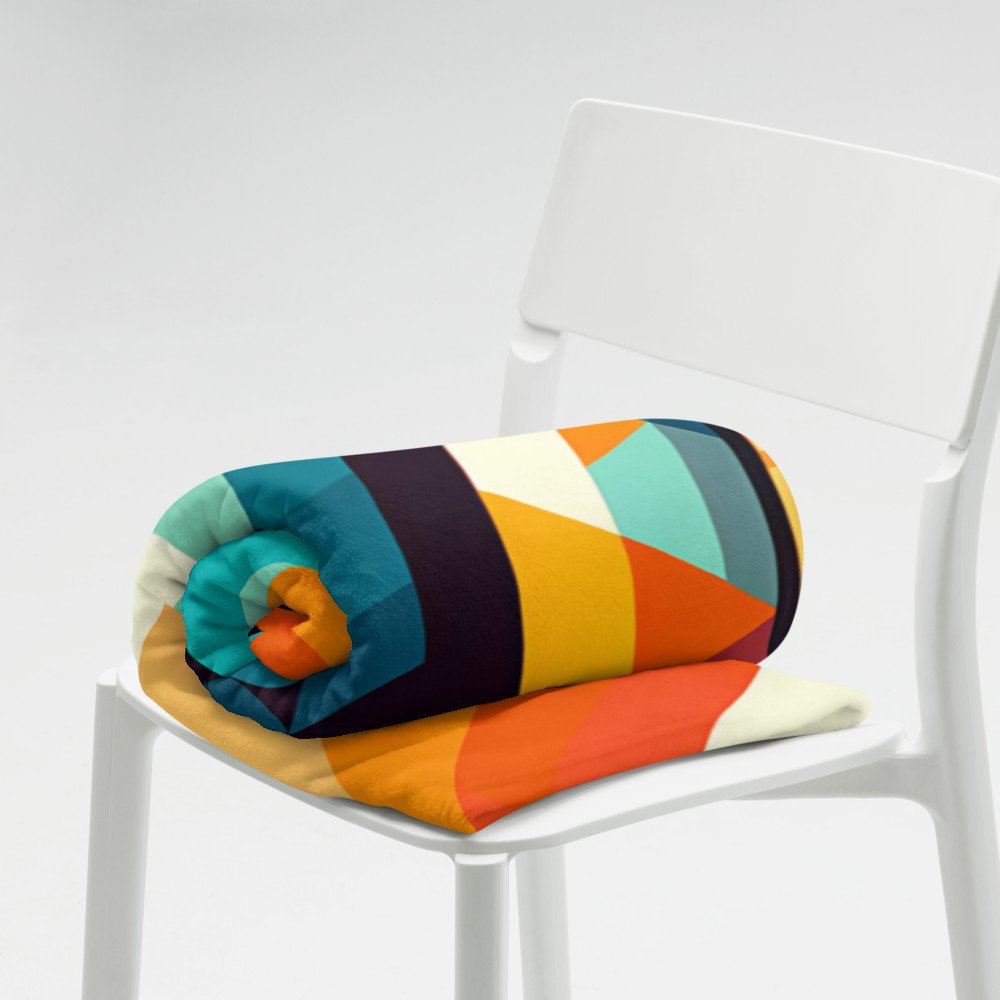 Geometric Sailboat on Colourful Waves — Throw Blanket