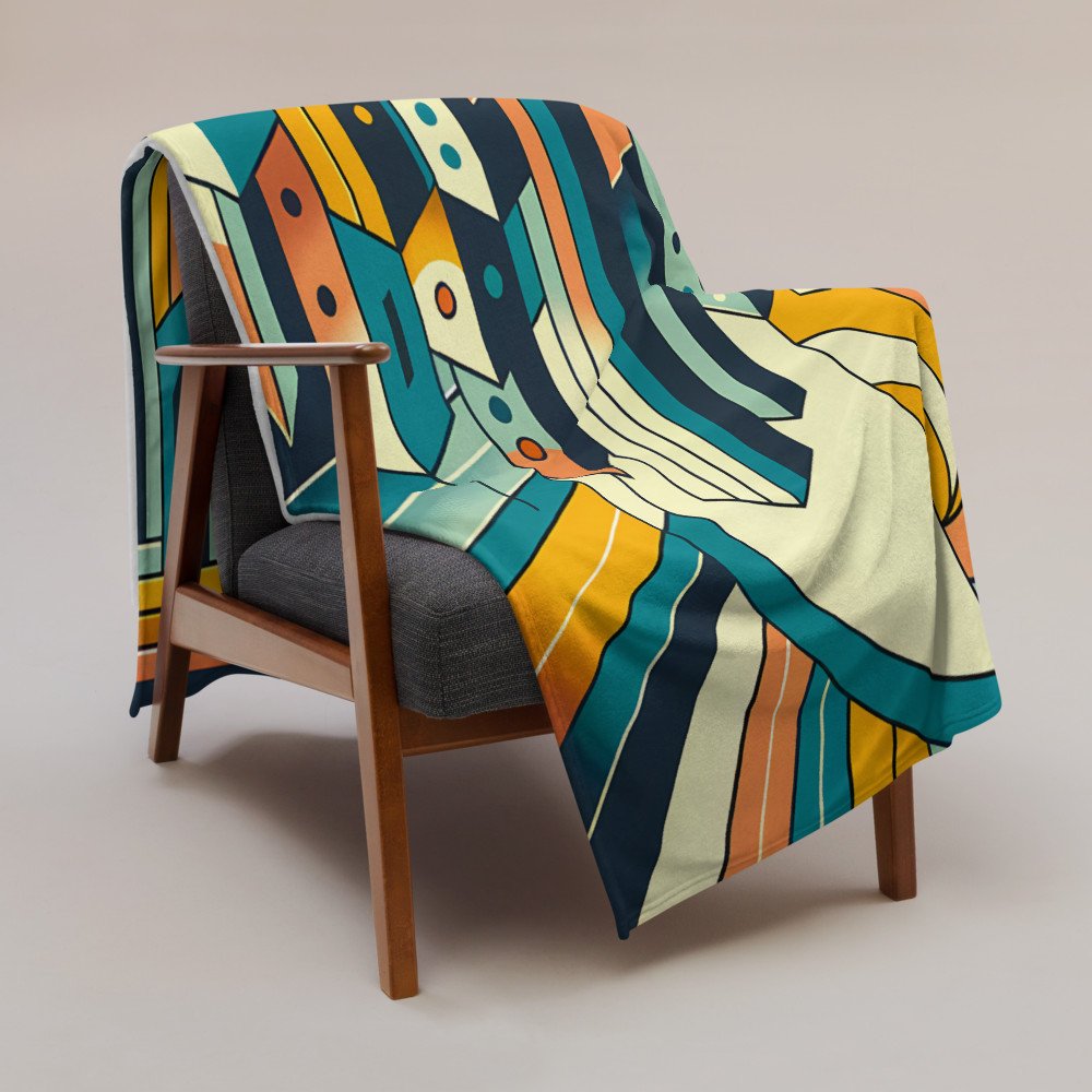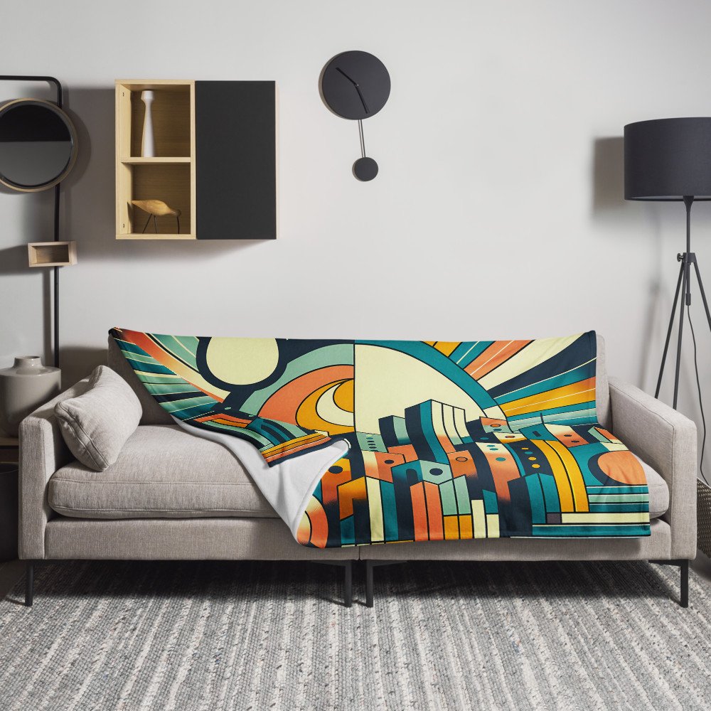 Solar NexusGeometric City Skyline with Sunburst — Throw Blanket