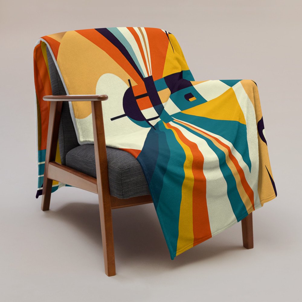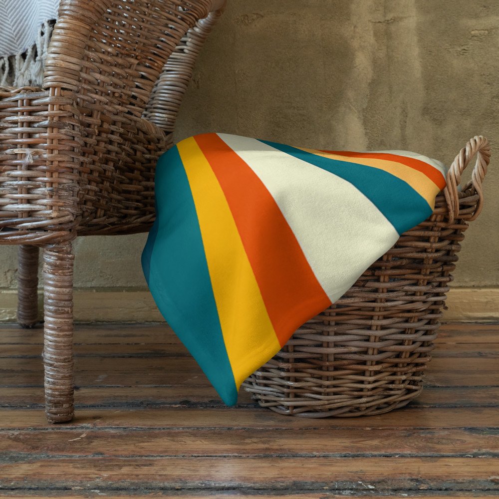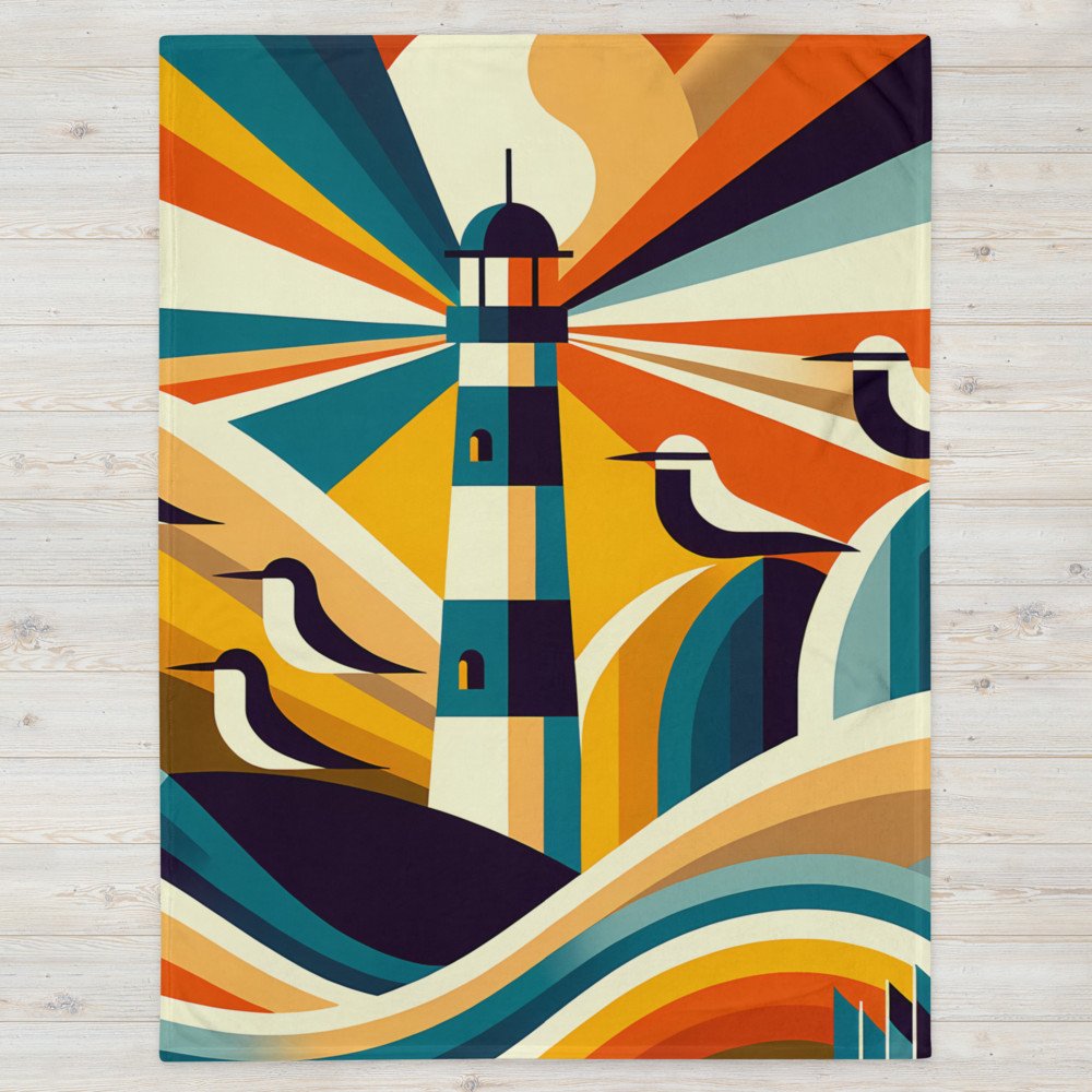 Retro Lighthouse Rays and Seagulls — Throw Blanket
