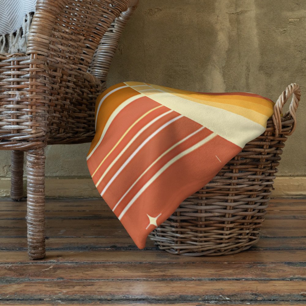 Nautical FacadeRetro Geometric City Sunset with Waves — Throw Blanket