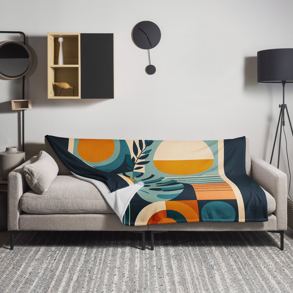 The bold mid-century shapes are woven into a supremely soft sherpa fleece throw. At 50" by 60", this cosy blanket lets you wrap up in the warm, balanced harmony of its geometric botanical design.