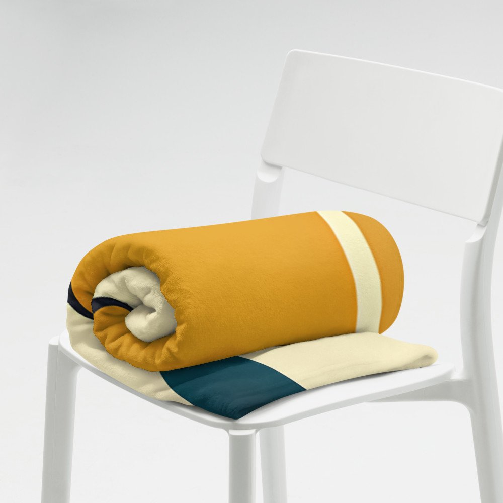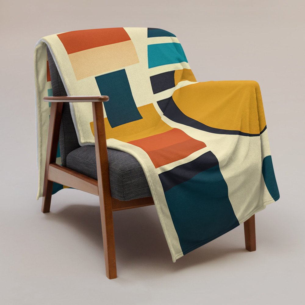 The soft sherpa fleece of this throw is printed with the warm, balanced geometry. Its cosy fabric makes the harmonious teal and burnt orange stripes ideal for relaxing under, adding a touch of retro-inspired comfort to any room.