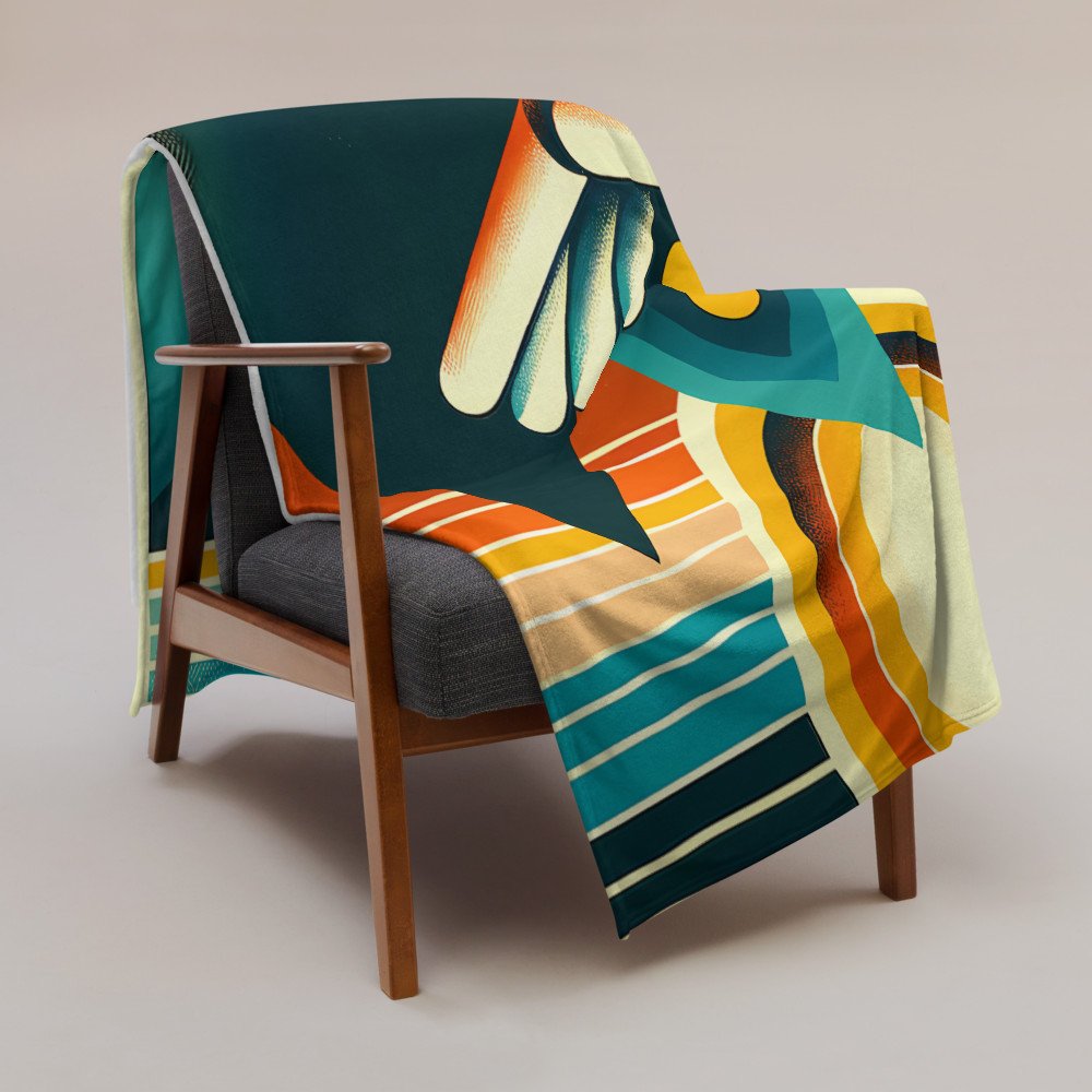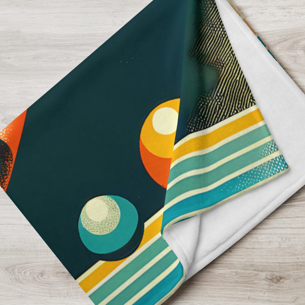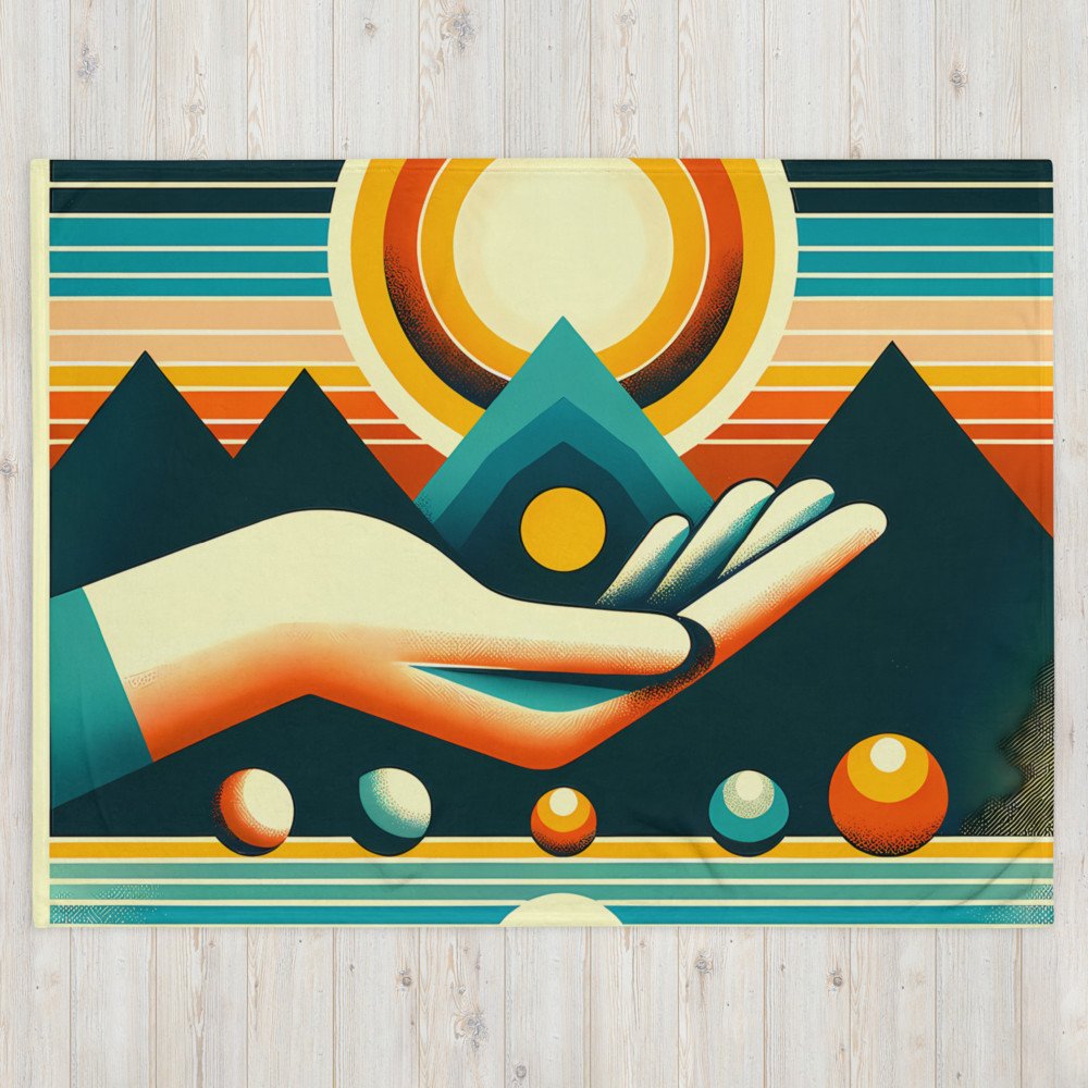 Retro Geometric Sun Over Mountains — Throw Blanket