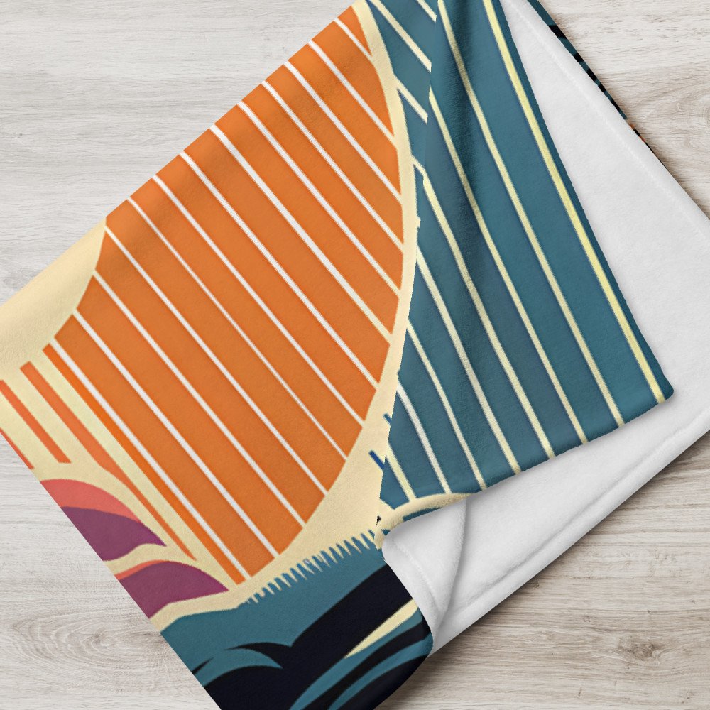 A stylised desert canyon scene with towering rock formations, saguaro cacti, and a striped sun on the horizon. Warm orange and coral tones fade into cool teal shadows for a soft gradient look. Clean geometric shapes and layered lines give it a modern abstract art feel, like a gradient poster.