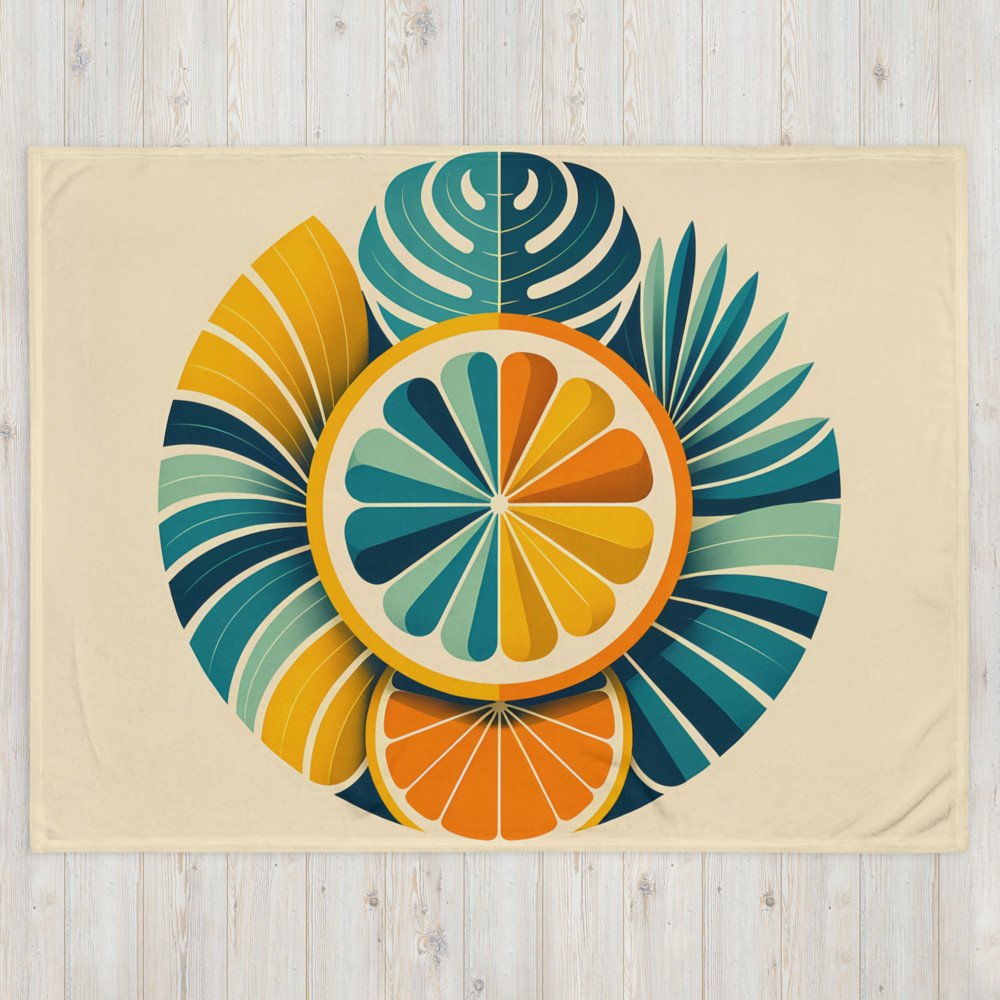 Geometric Citrus Slice with Tropical Leaves — Throw Blanket