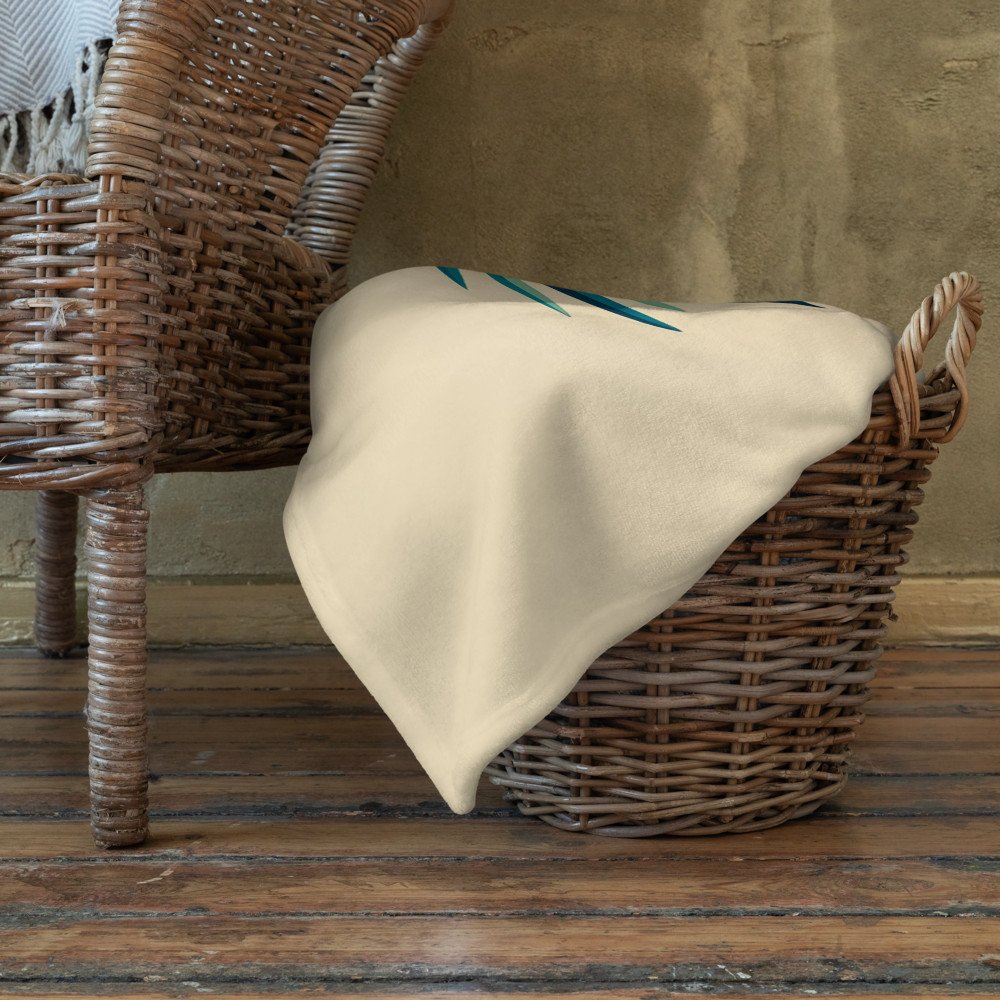 This soft sherpa fleece throw is ideal for cosy evenings, adorned with a bold, symmetrical botanical pattern. The geometric citrus design in teal and gold brings a touch of curated, modern warmth to your living space.