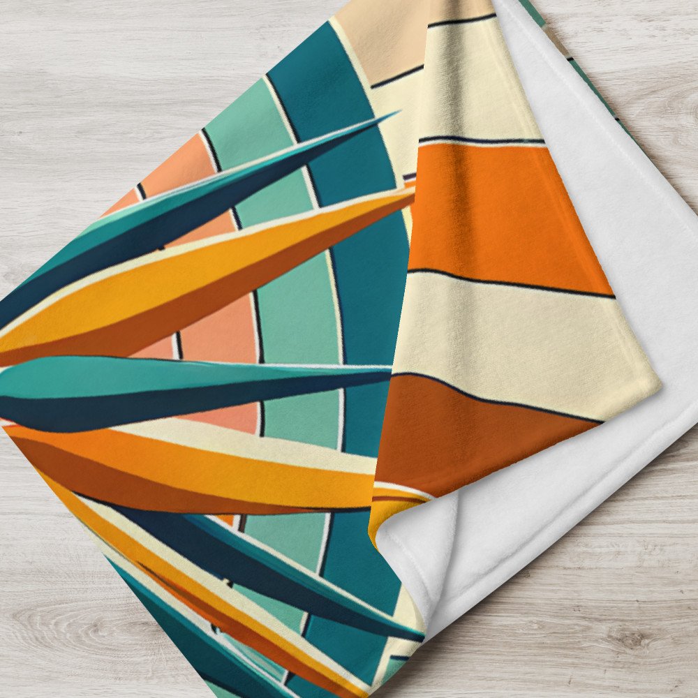 Geometric Monstera Leaf with Bird of Paradise — Throw Blanket
