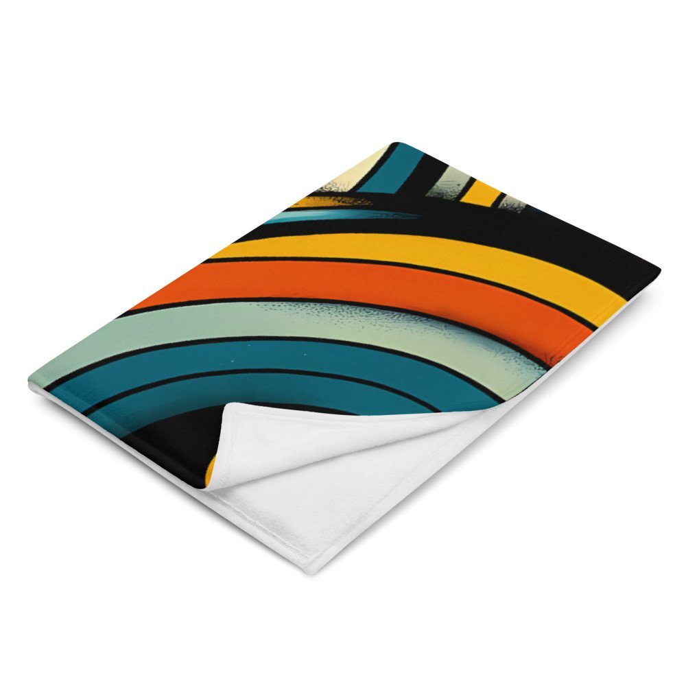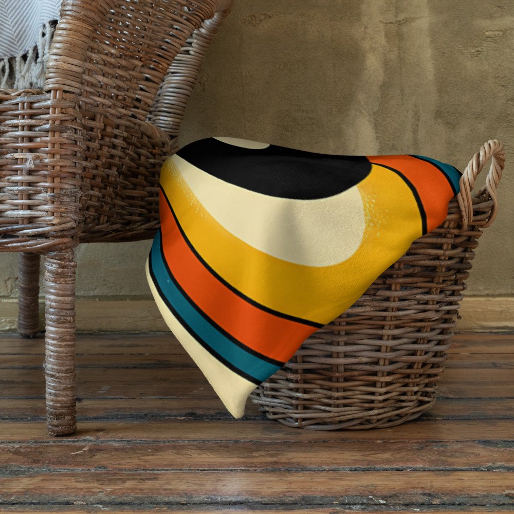 Retro Geometric Eye Abstract in Teal Orange and Gold — Throw Blanket