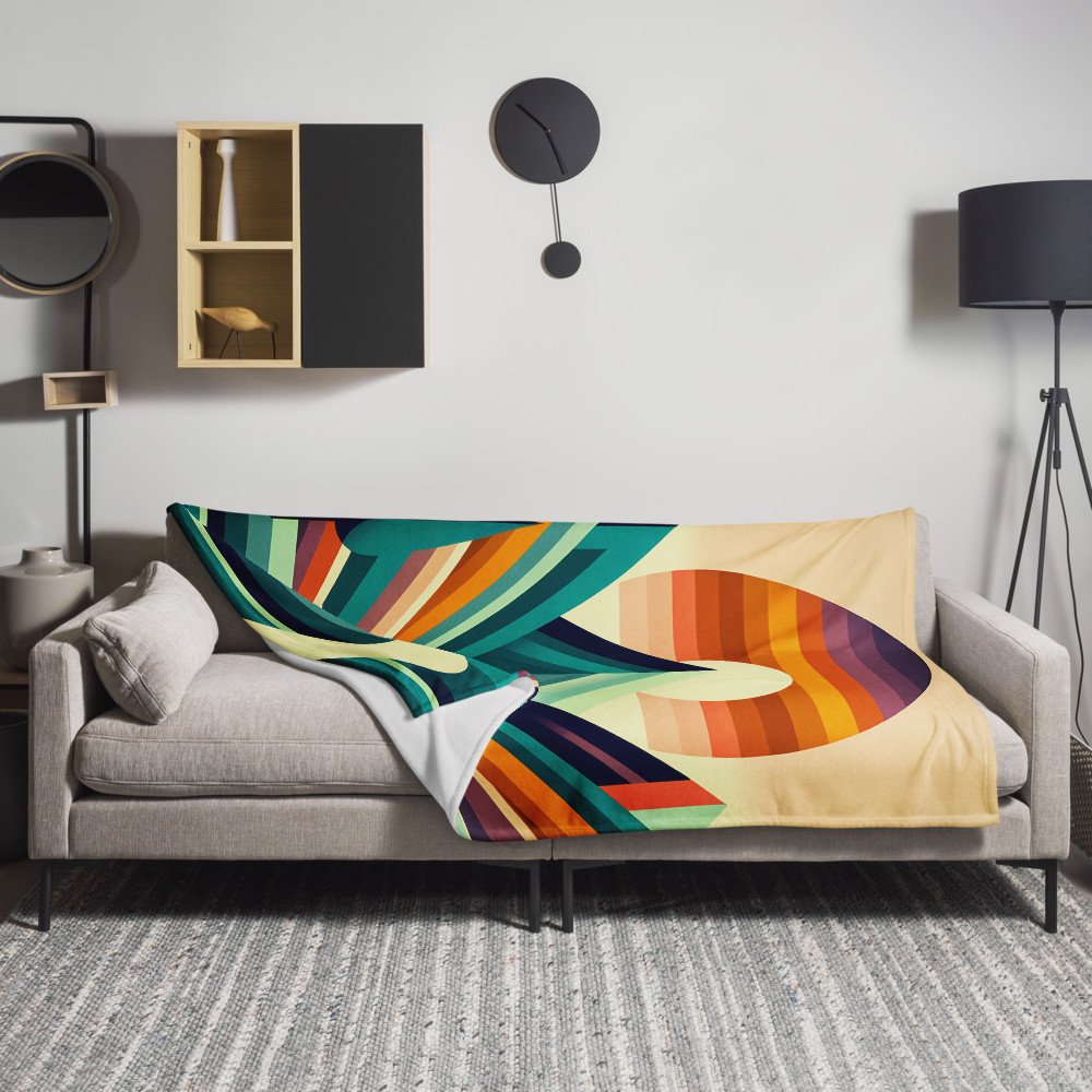 Geometric Mountain Sunset Landscape — Throw Blanket