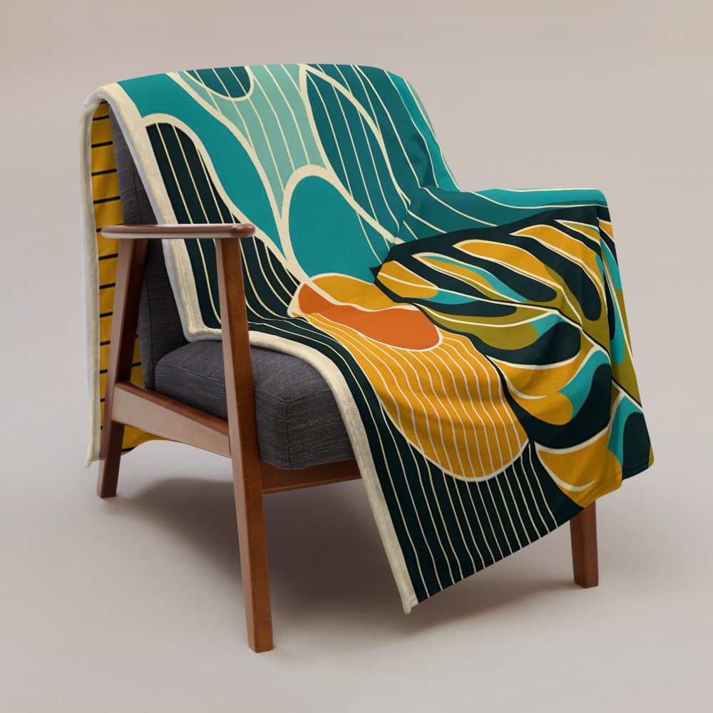 Abstract Botanical Leaf and Hibiscus Sunset — Throw Blanket