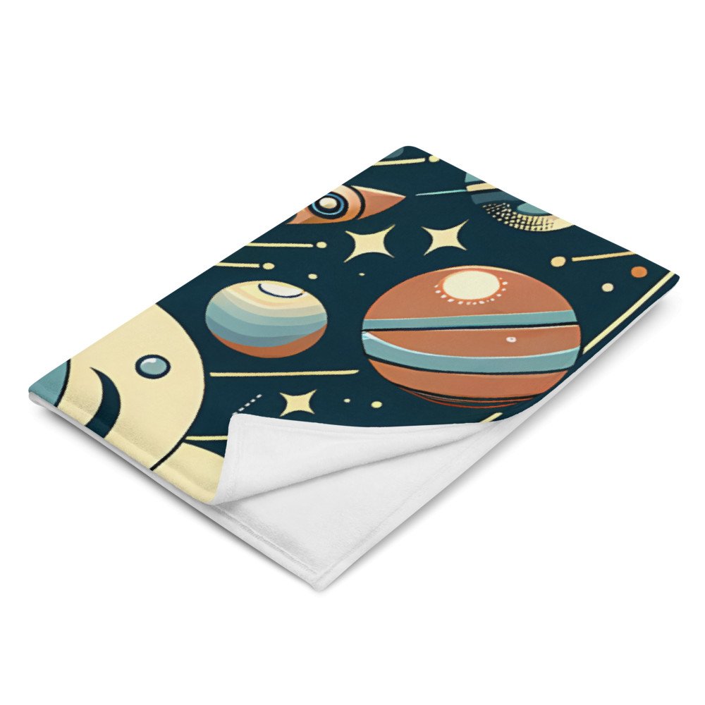 Retro Geometric Space Planets in Teal and Orange — Throw Blanket