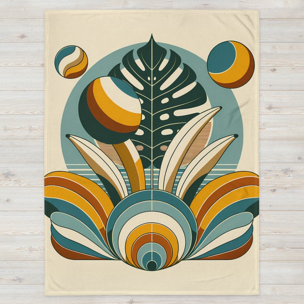 Geometric Monstera Leaf in Retro Botanical Shapes — Throw Blanket