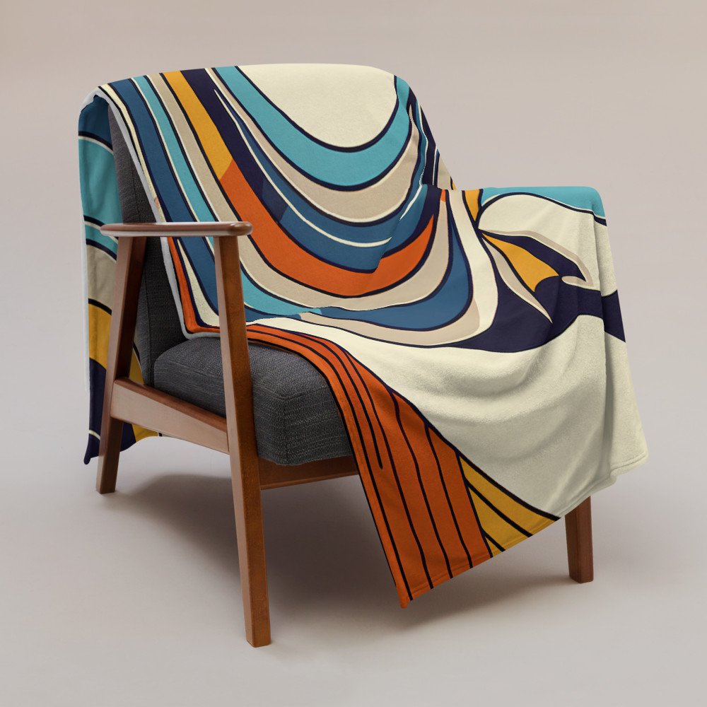 Breeze WhisperAbstract Woman Profile with Flowing Retro Waves — Throw Blanket