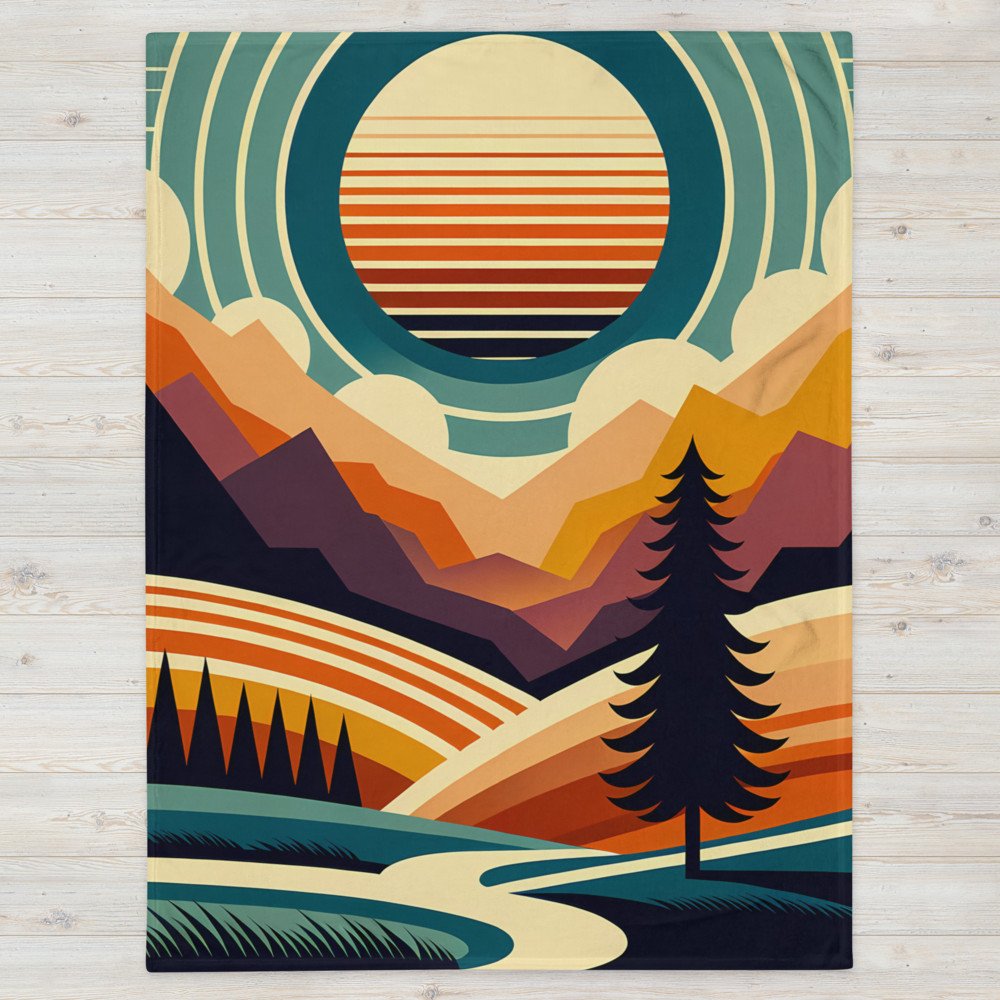 Geometric Mountain Sunrise Landscape — Throw Blanket