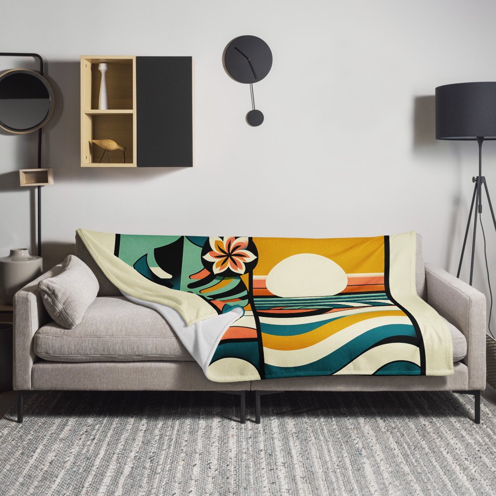Abstract Monstera Leaf and Sun Geometric Waves — Throw Blanket