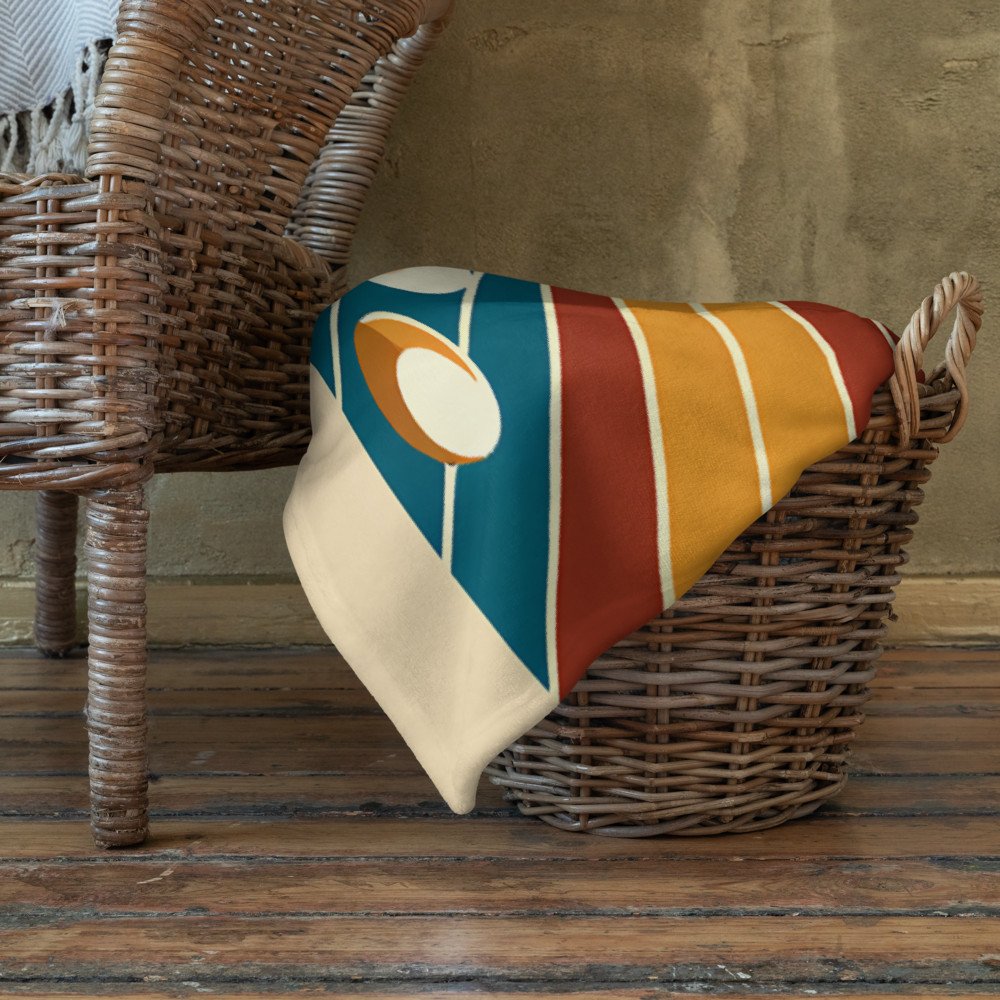 Rustic AscentGeometric Mountain Peaks with River and Sunburst — Throw Blanket