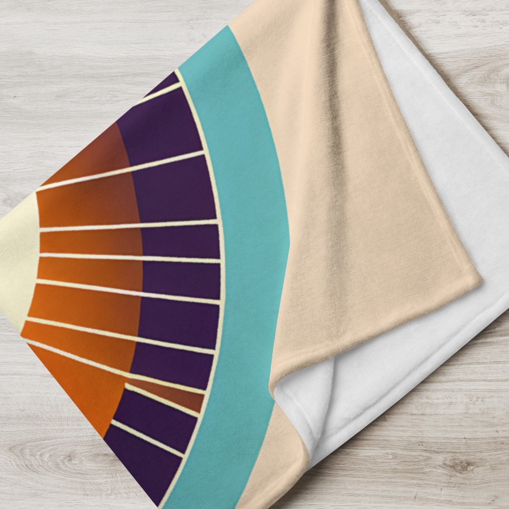 Geometric Monstera Leaf with Crescent Moon — Throw Blanket