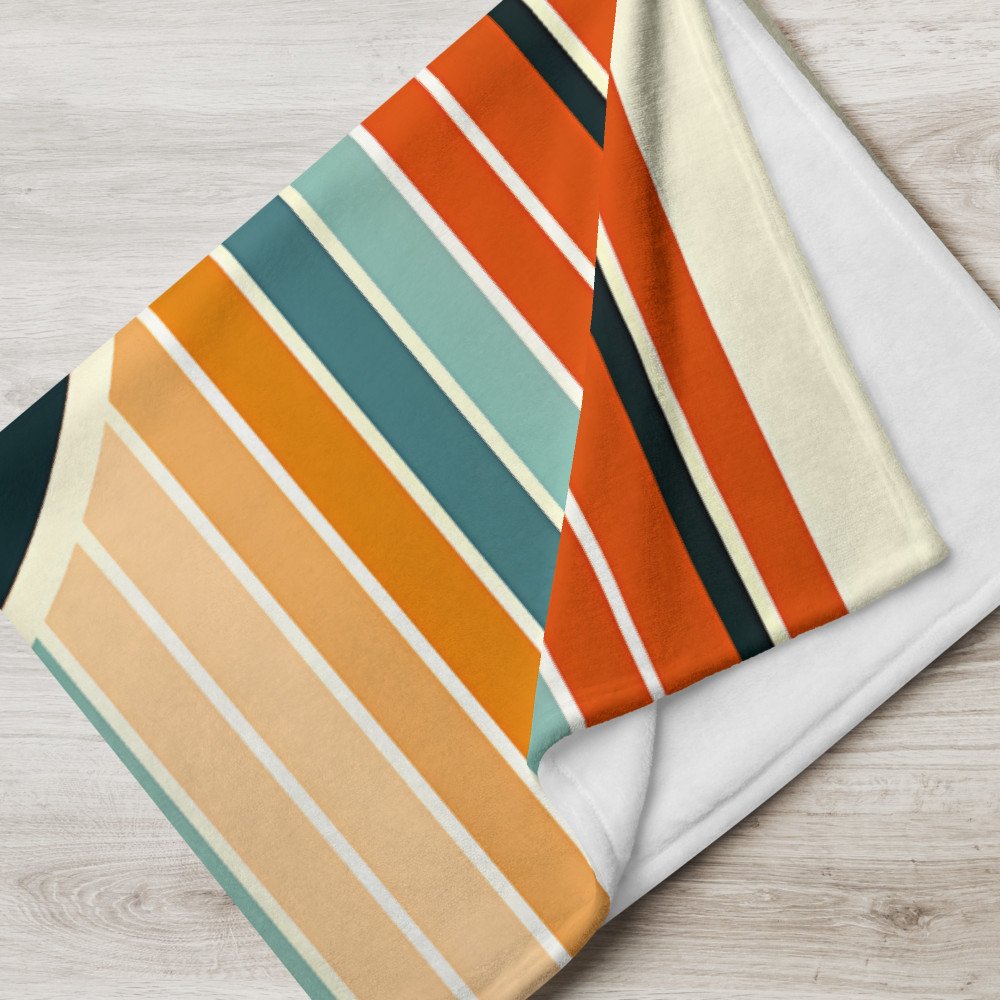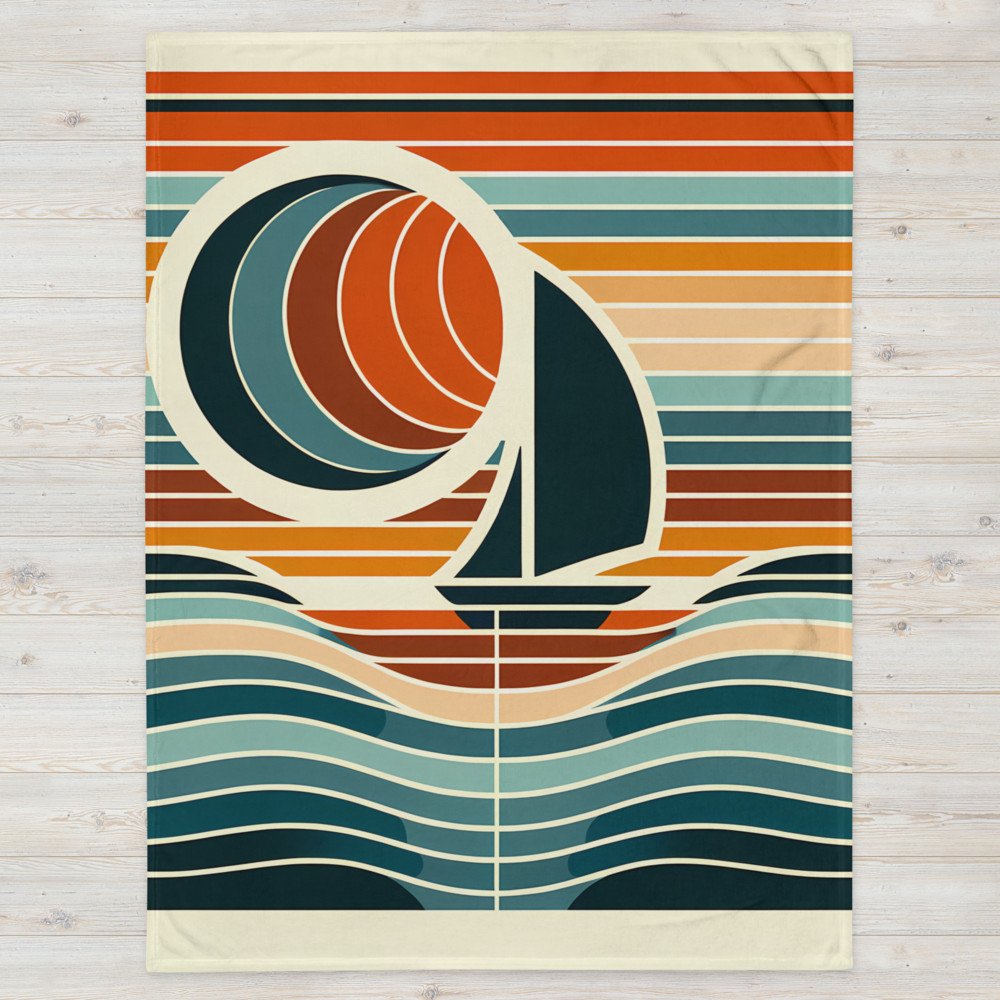 Geometric Sailboat at Sunset in Colour Block Stripes — Throw Blanket