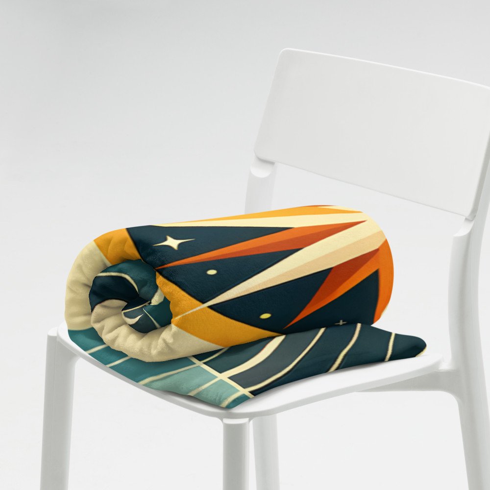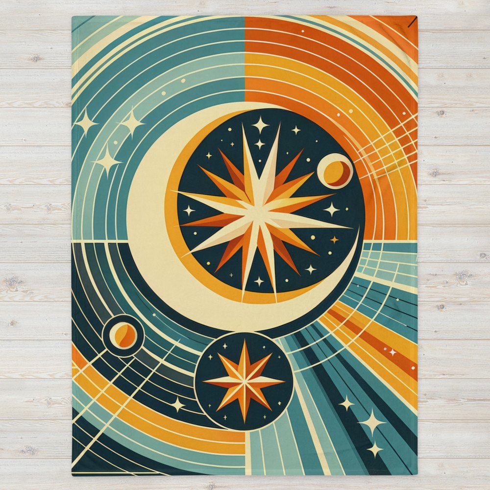 Geometric Crescent Moon and Starburst Orbit — Throw Blanket