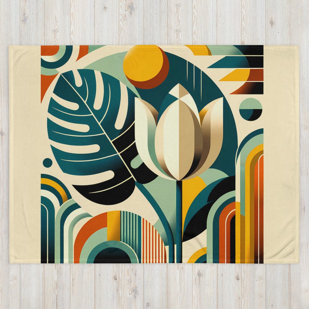 Geometric tulip and monstera leaf abstract — Throw Blanket