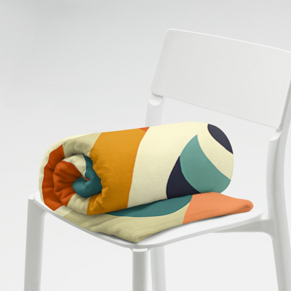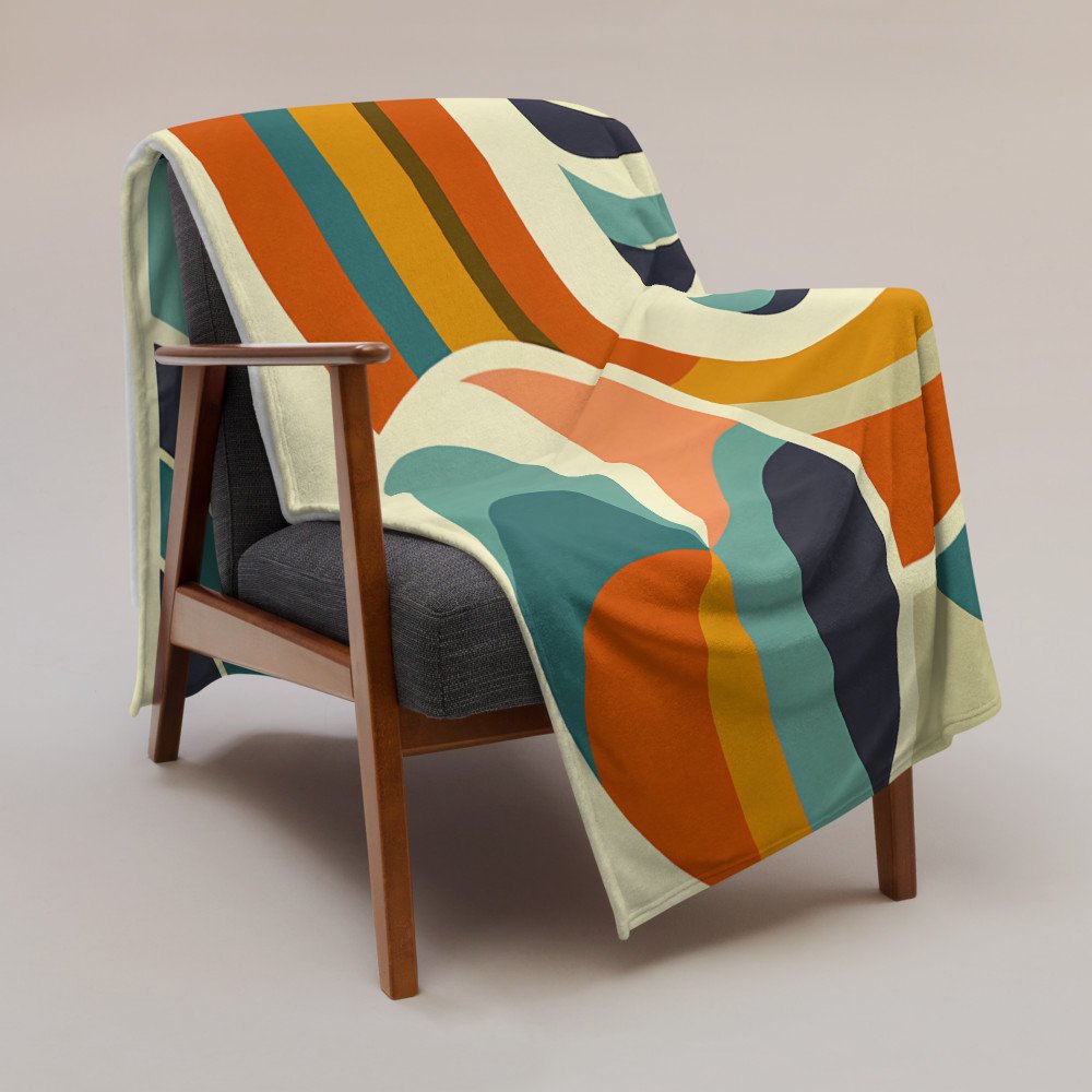 The soft sherpa fleece of this throw is printed with the full, vibrant design. Its cosy texture complements the warm coral and mustard tones of the retro waves, perfect for lounging.