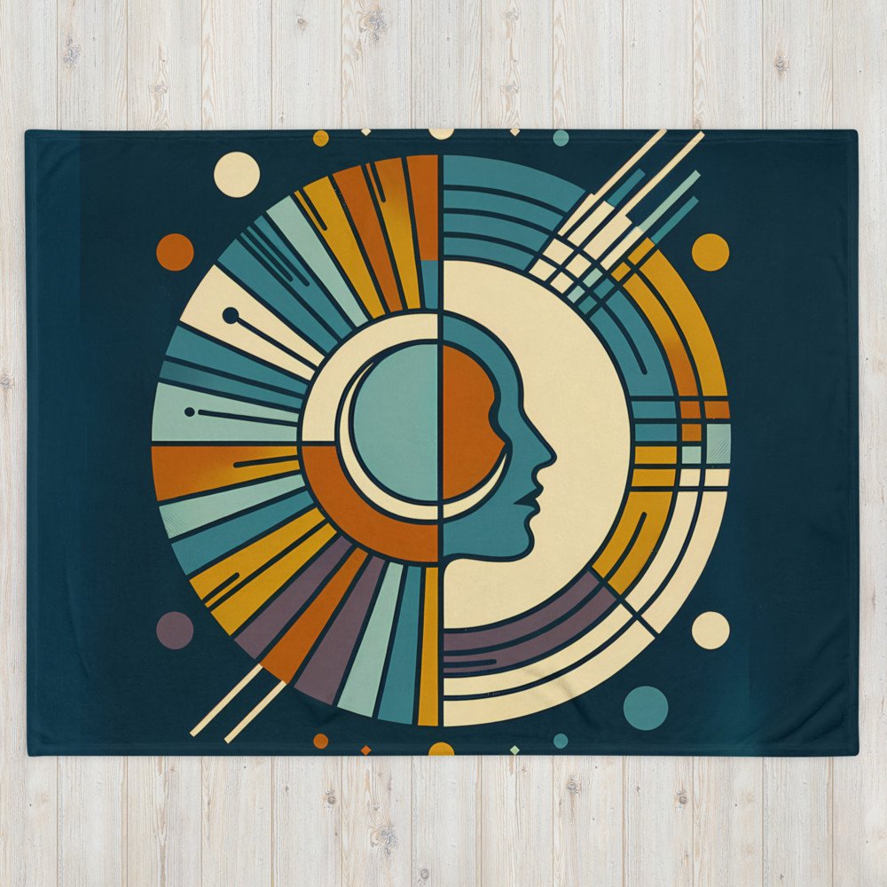 Lunar GlyphsGeometric Moon Face in Retro Space Circles — Throw Blanket