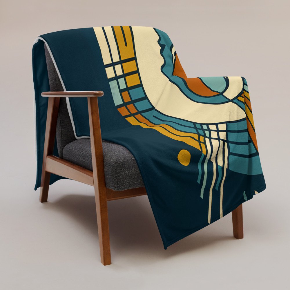 The soft sherpa fleece of this throw blanket makes the cosmic motif a tactile experience. Curl up under the harmonious teal and orange circles, where retro-futurist style meets everyday comfort.