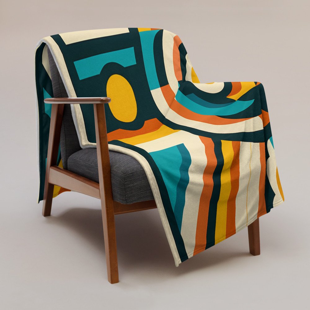 Retro Geometric Sun and Waves — Throw Blanket