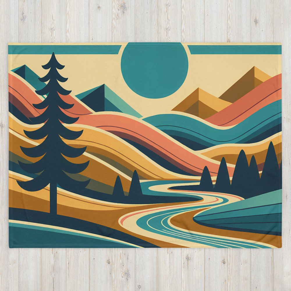 Geometric Mountain River Landscape — Throw Blanket
