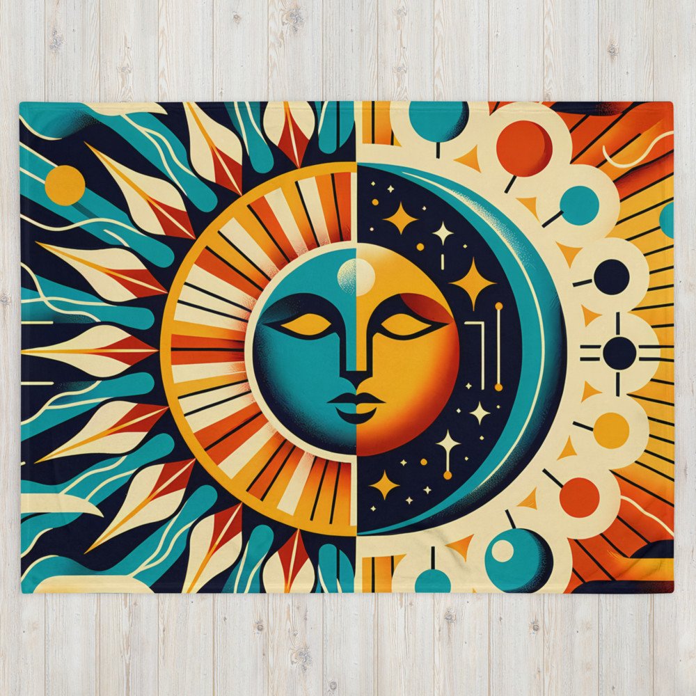 Celestial Sun Moon Face Geometry — Throw Blanket