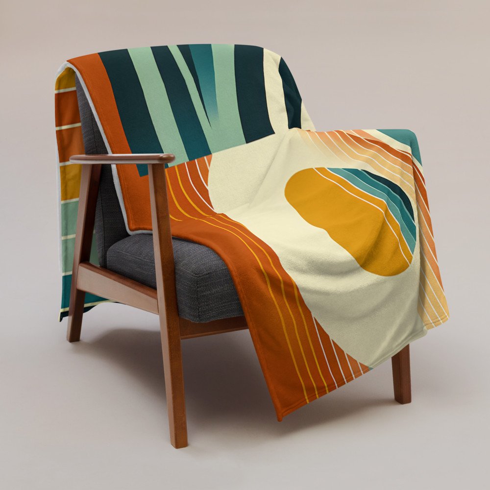 Geometric Sun and Monstera Abstract — Throw Blanket