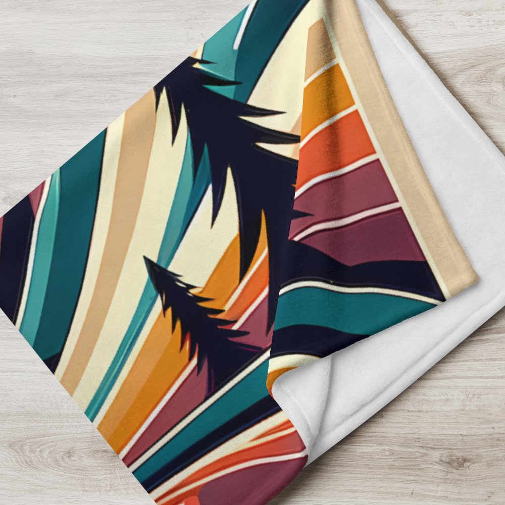 Geometric Mountain Valley with Retro Sun — Throw Blanket