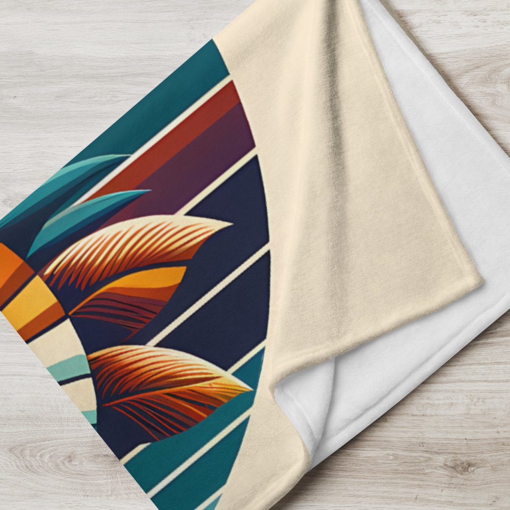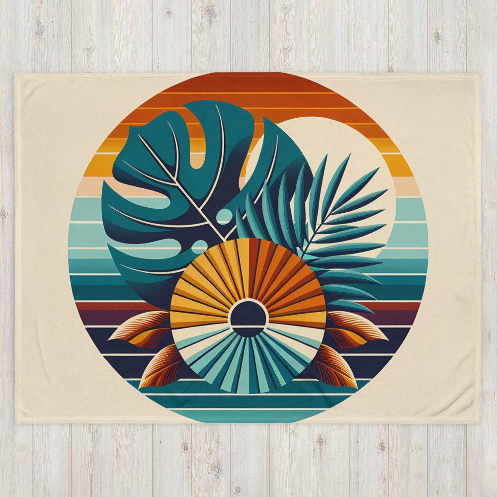 Sunlit CanopyAbstract Tropical Leaves Sunset Circle — Throw Blanket