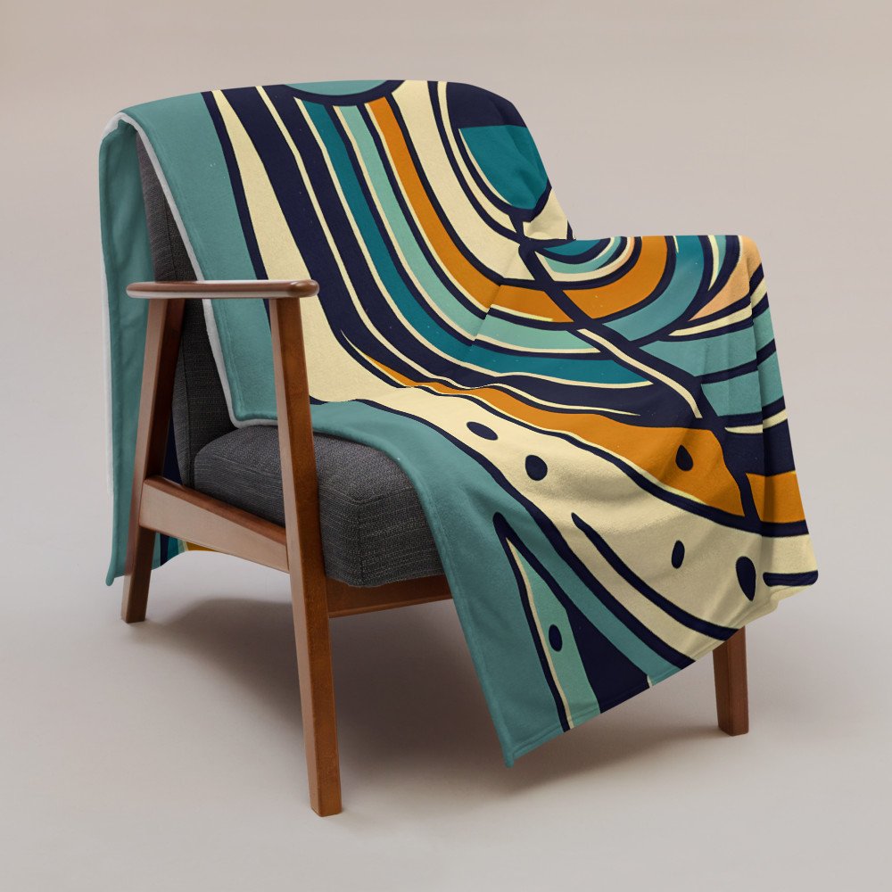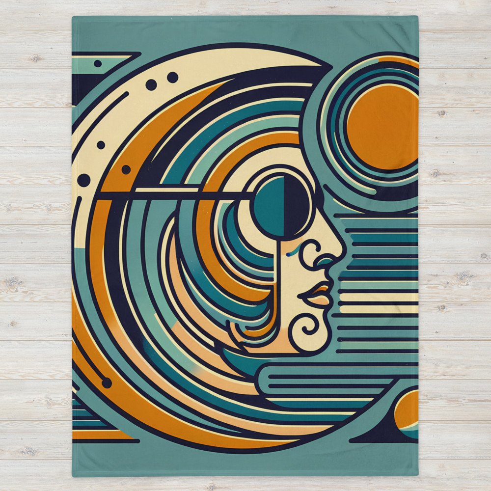 Solar GazeGeometric Line Face with Retro Sun and Arcs — Throw Blanket