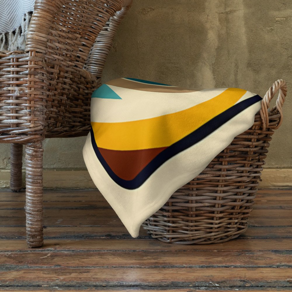 Retro cassette with geometric rainbow lines — Throw Blanket