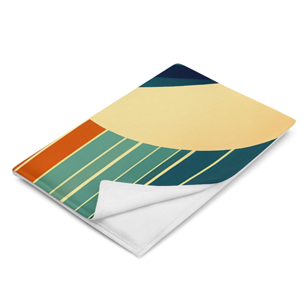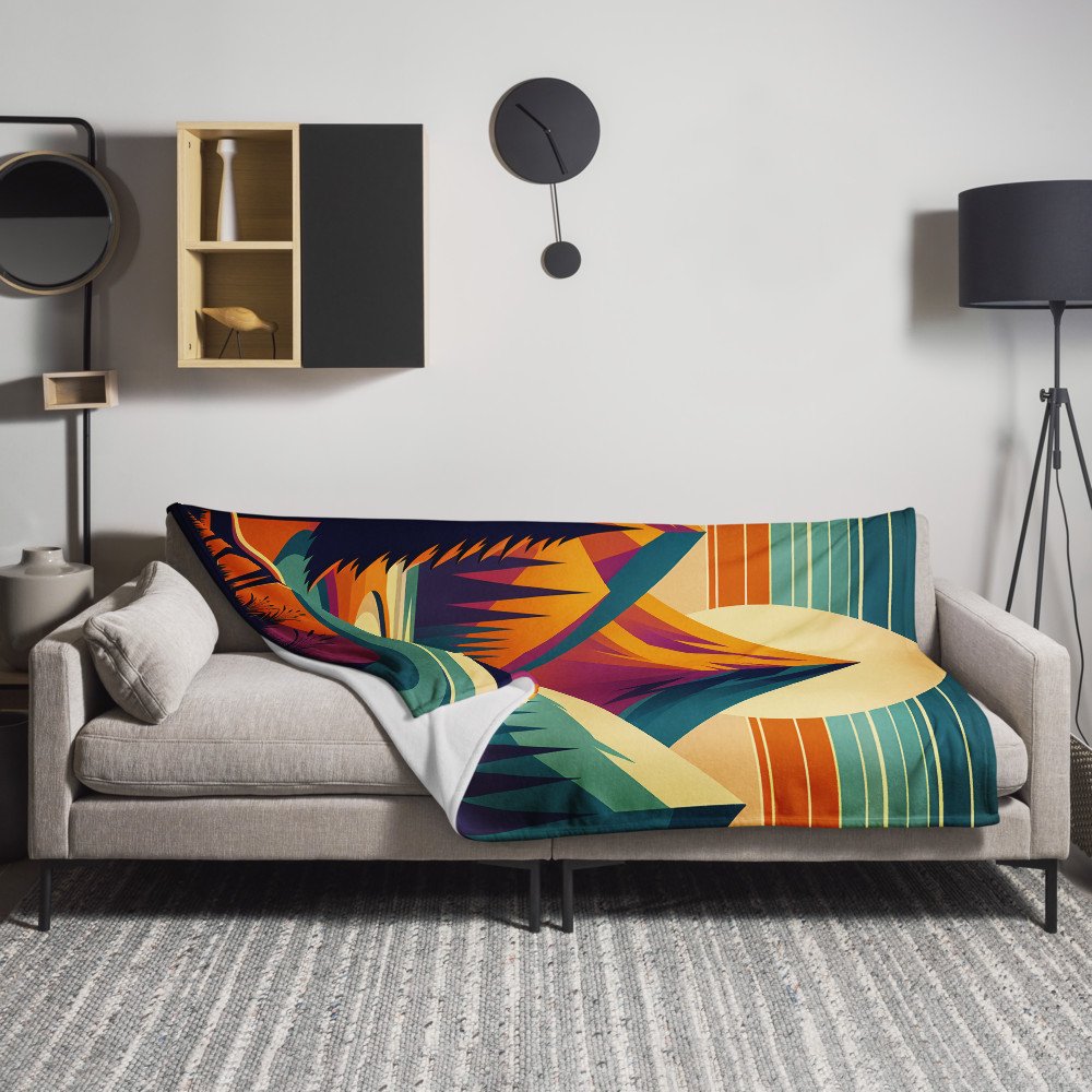 Geometric Mountain Landscape with Fox and River — Throw Blanket