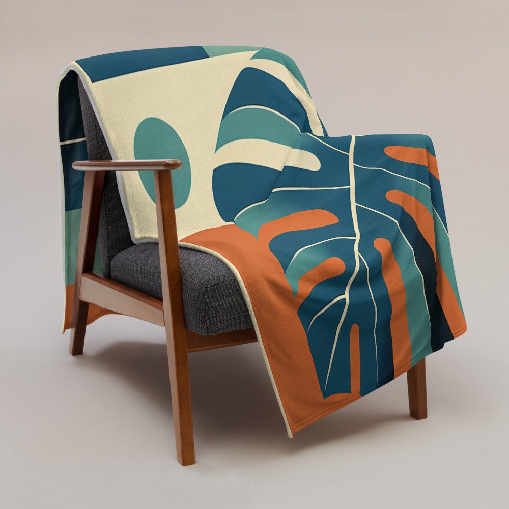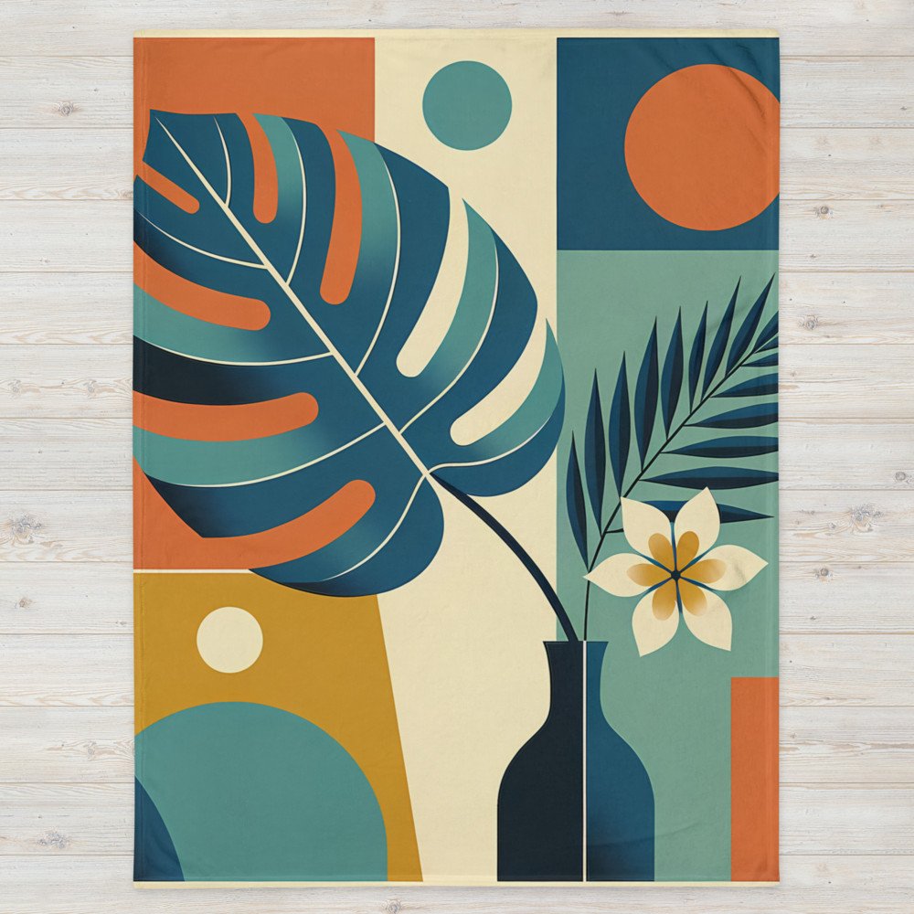 Cypress MirageGeometric Monstera Vase with Tropical Botanicals — Throw Blanket
