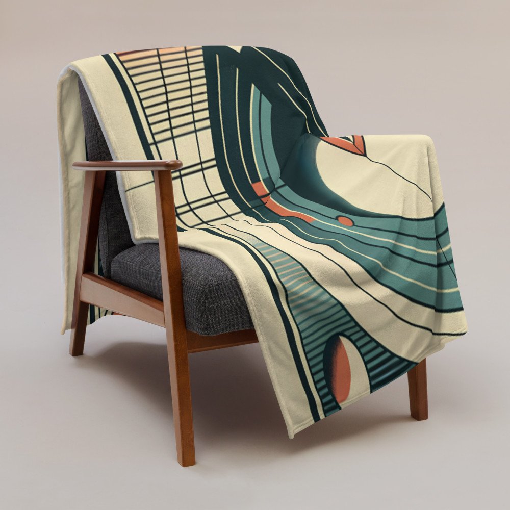 Pinnacle NexusRetro Geometric Mountain with Planets — Throw Blanket