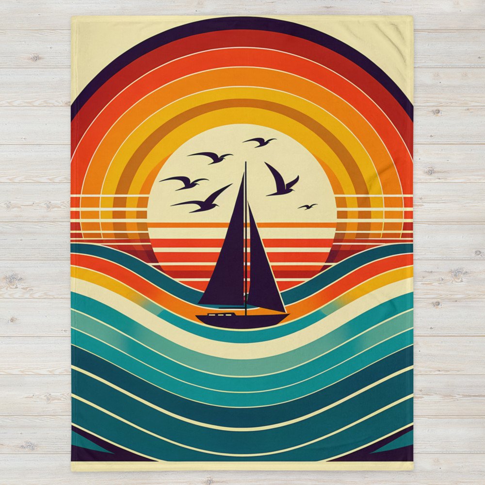 Evening SpireRetro Sailboat Sunset Waves — Throw Blanket