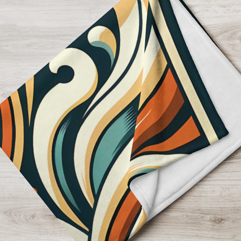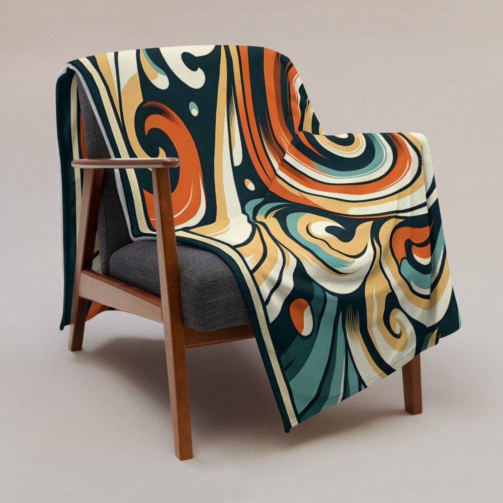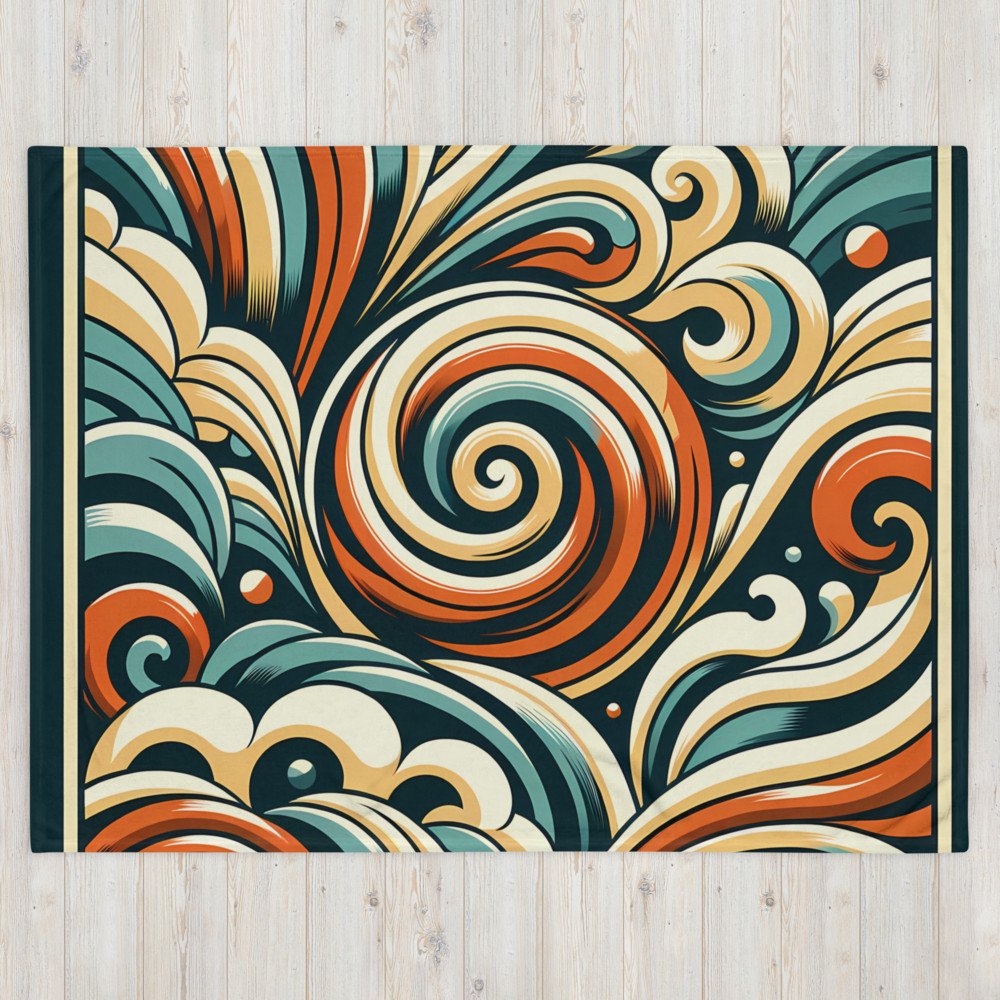 Tangerine DriftwoodRetro Abstract Swirl Waves in Teal and Burnt Orange — Throw Blanket